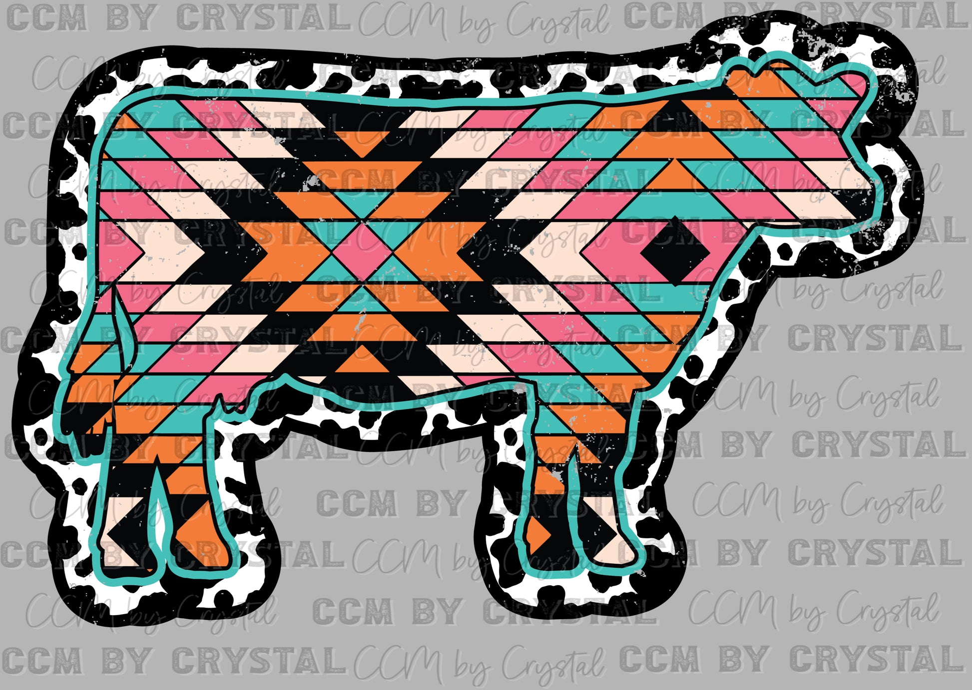 Aztec Cow Distressed Western Ready to Press Transfer DTF Transfer Sublimation Transfer