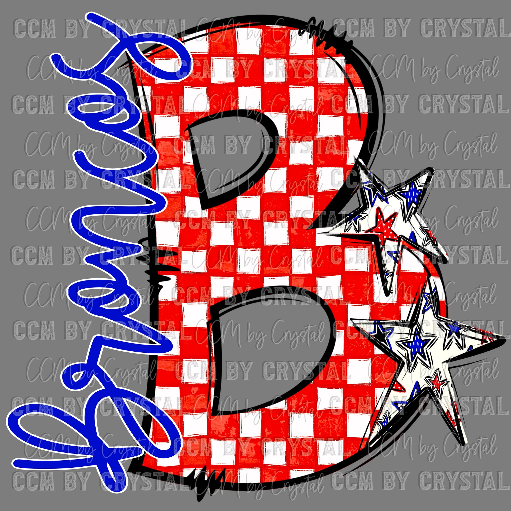 B Broncos Red and Blue Checkered Mascot Ready to Press Transfer DTF Transfer Sublimation Transfer