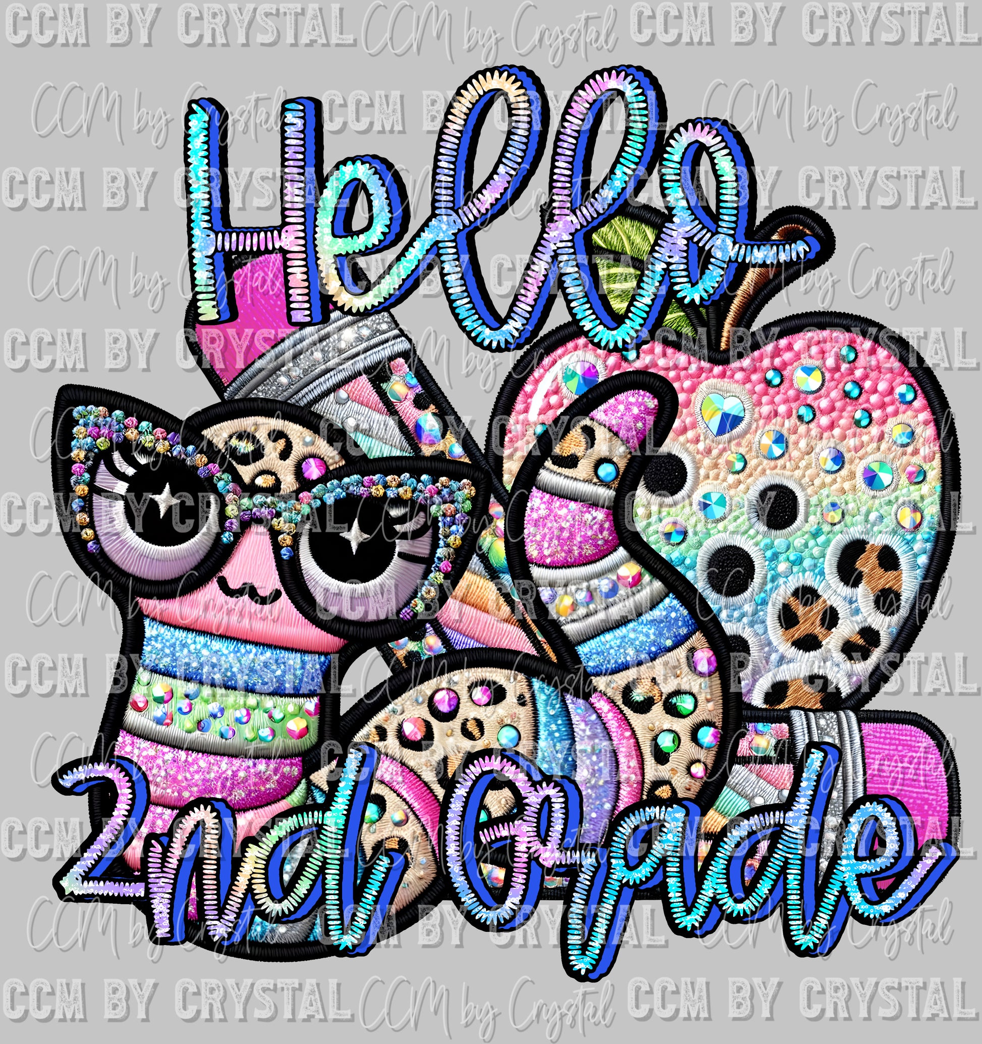 Back to School hello 2nd Grade Faux Rhinestone Effect Ready to Press Transfer DTF Transfer Sublimation Transfer