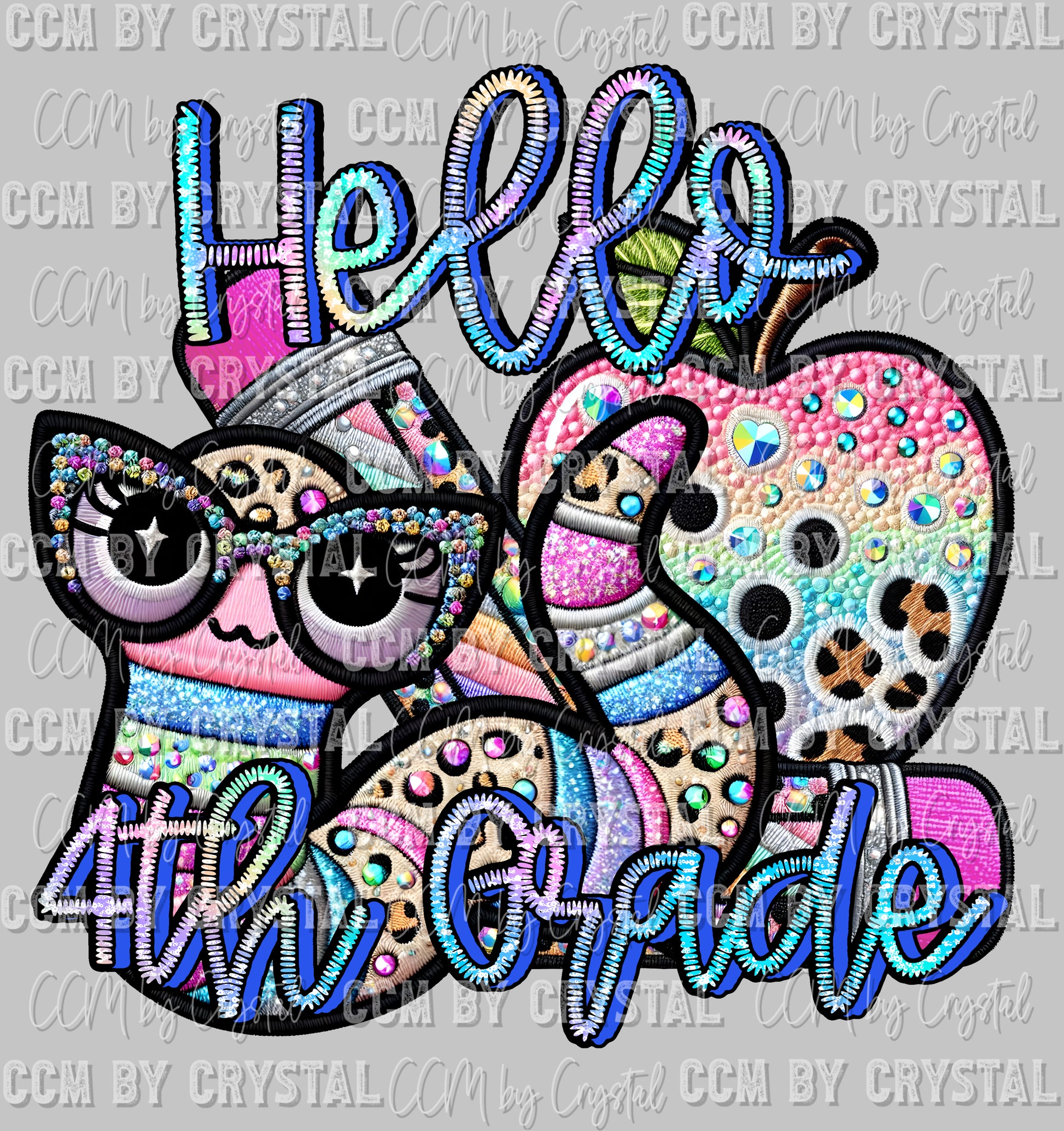 Back to School hello 4th Grade Faux Rhinestone Effect Ready to Press Transfer DTF Transfer Sublimation Transfer