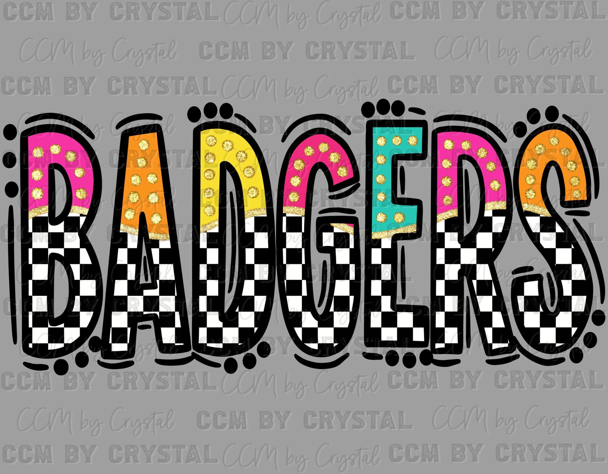 Badgers Colorful Checkered Mascot Ready to Press Transfer DTF Transfer Sublimation Transfer