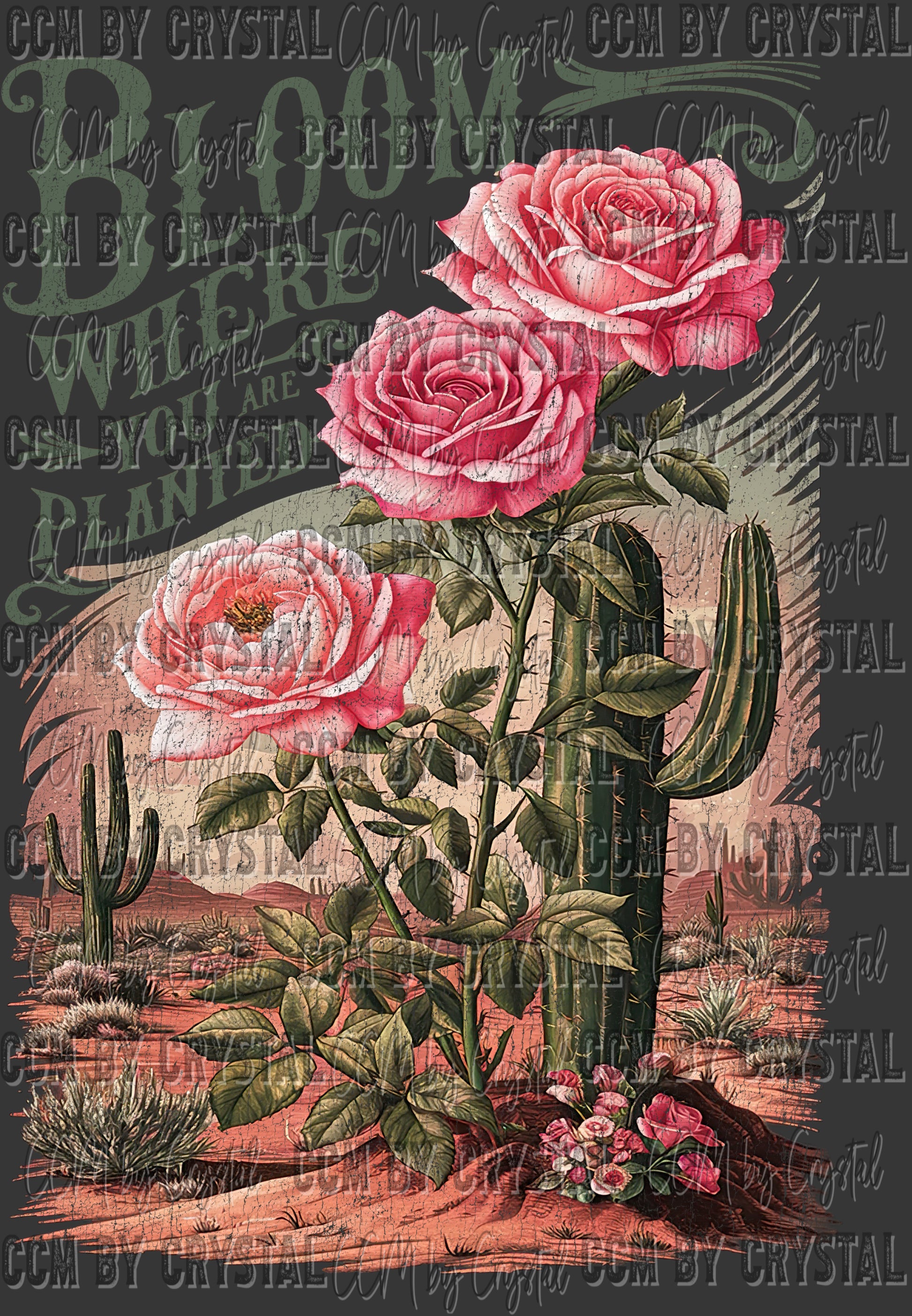 Bloom Where You Are Planted Green Distressed Ready to Press Transfer DTF Transfer Sublimation Transfer