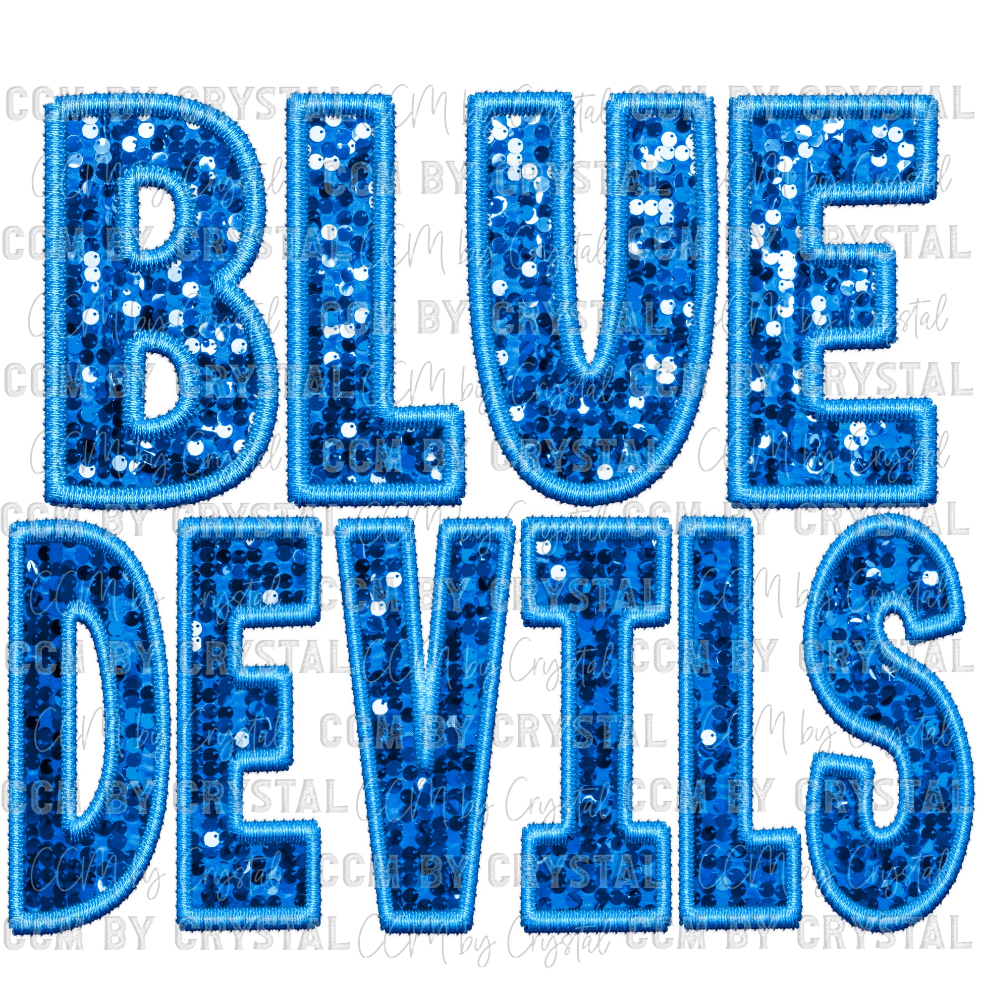 Blue Devils Mascot Faux Sequins Faux Embroidery PNG Digital File ONLY