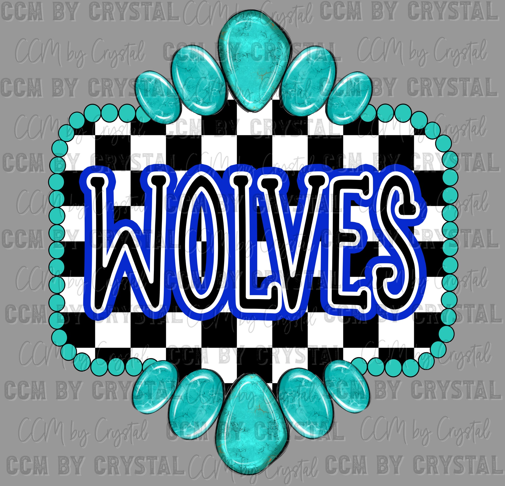 Blue Wolves Turquoise Concho Ready to Press Transfer DTF Transfer Sublimation Transfer