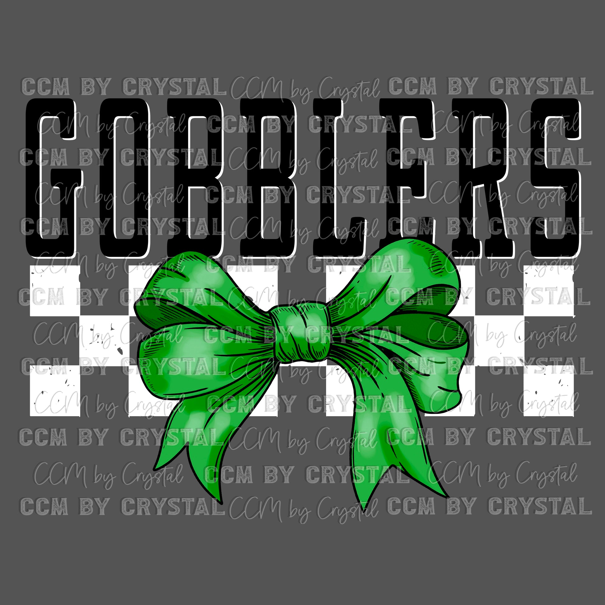 Gobblers Green Bow Mascot Ready to Press Transfer DTF Transfer Sublimation Transfer