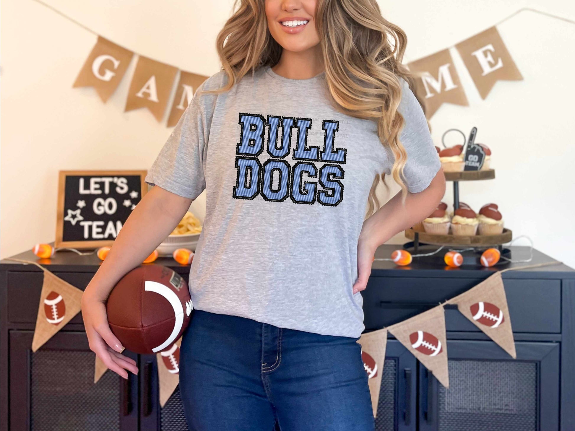 Bulldogs Faux Embroidery Stripes Blue Sports Mascot Ready to Press Transfer DTF Transfer Sublimation Transfer