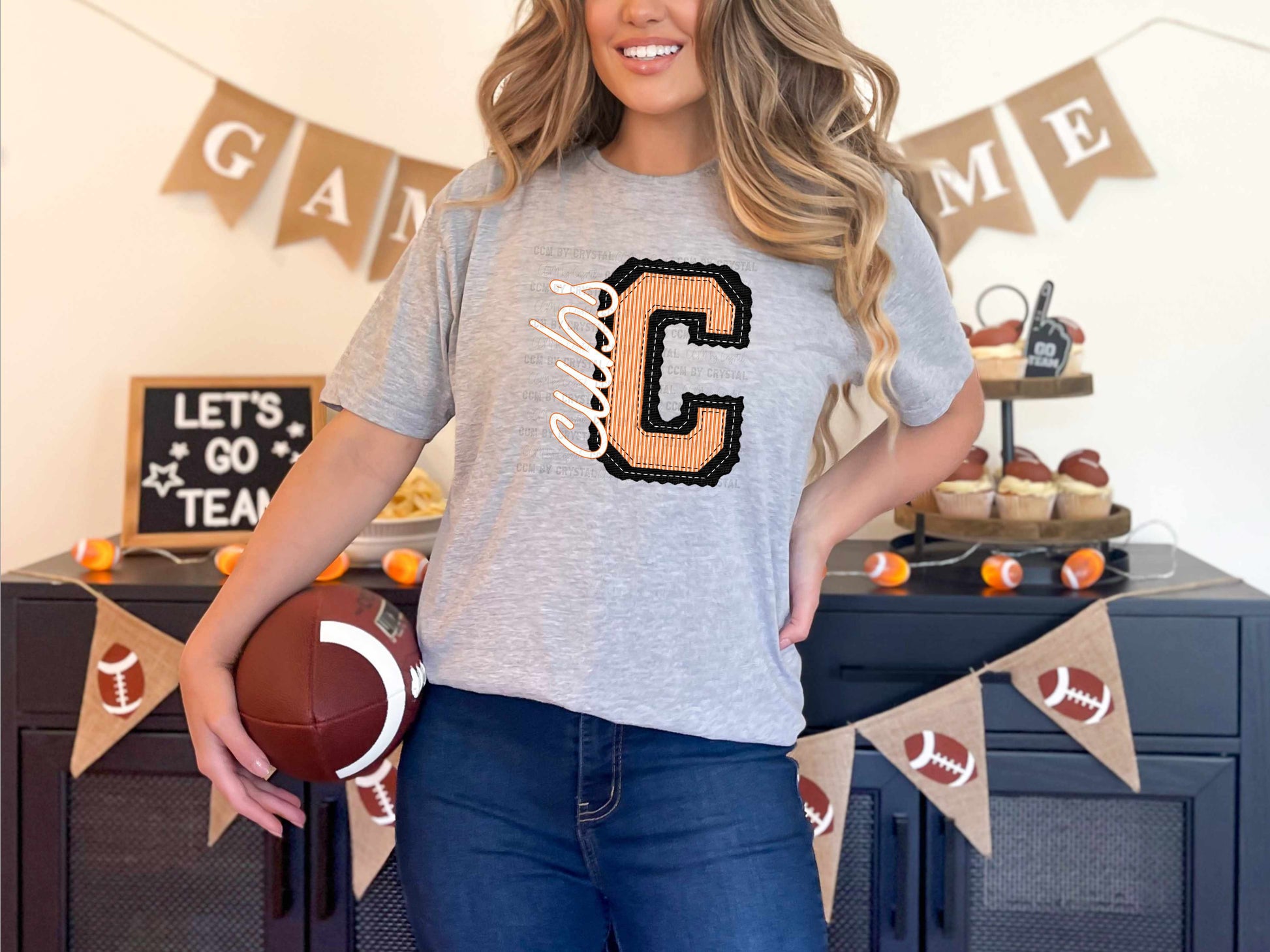 Cubs Faux Embroidery Stripes Orange Sports Mascot Ready to Press Transfer DTF Transfer Sublimation Transfer