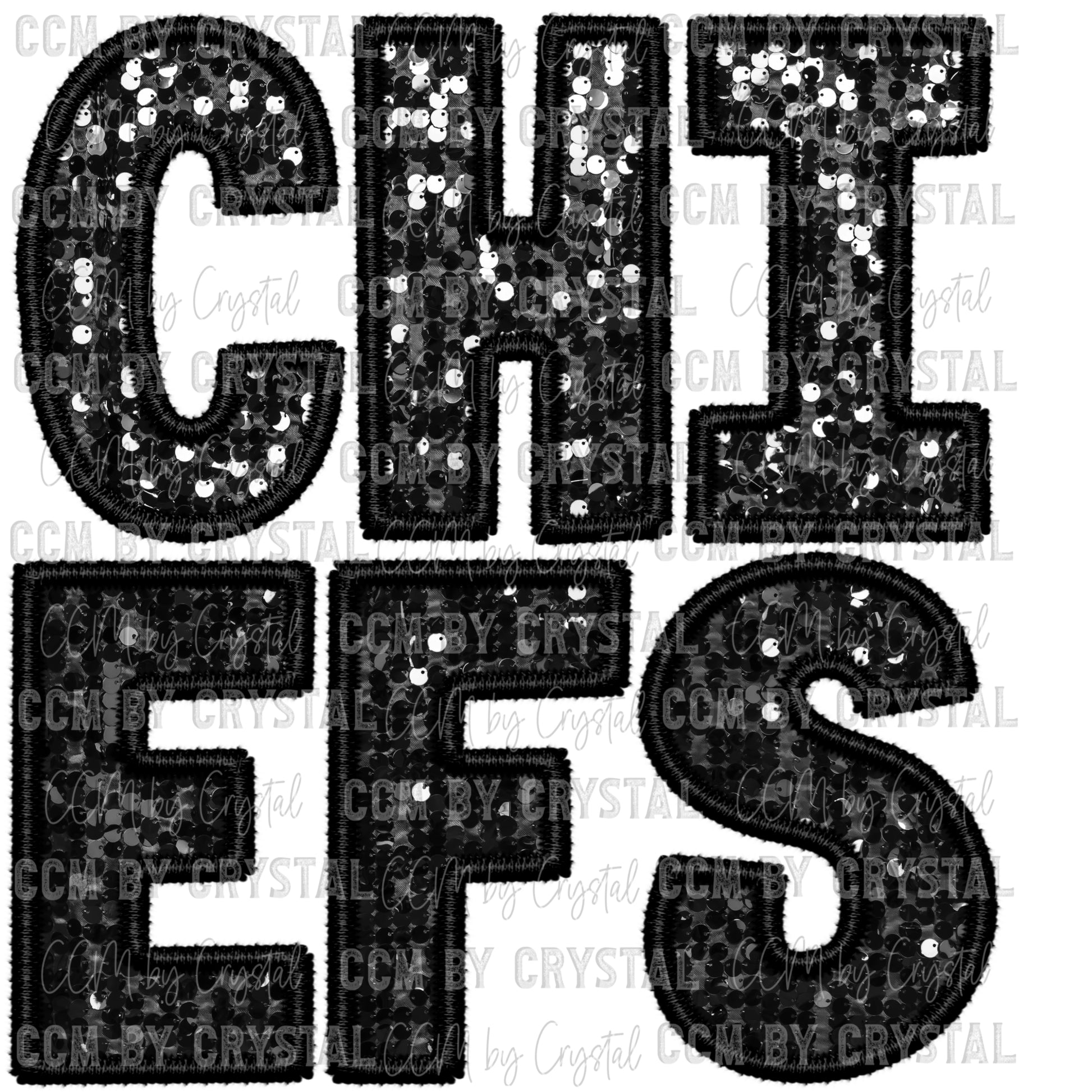 Chiefs Black Mascot Faux Sequins Faux Embroidery PNG Digital File ONLY