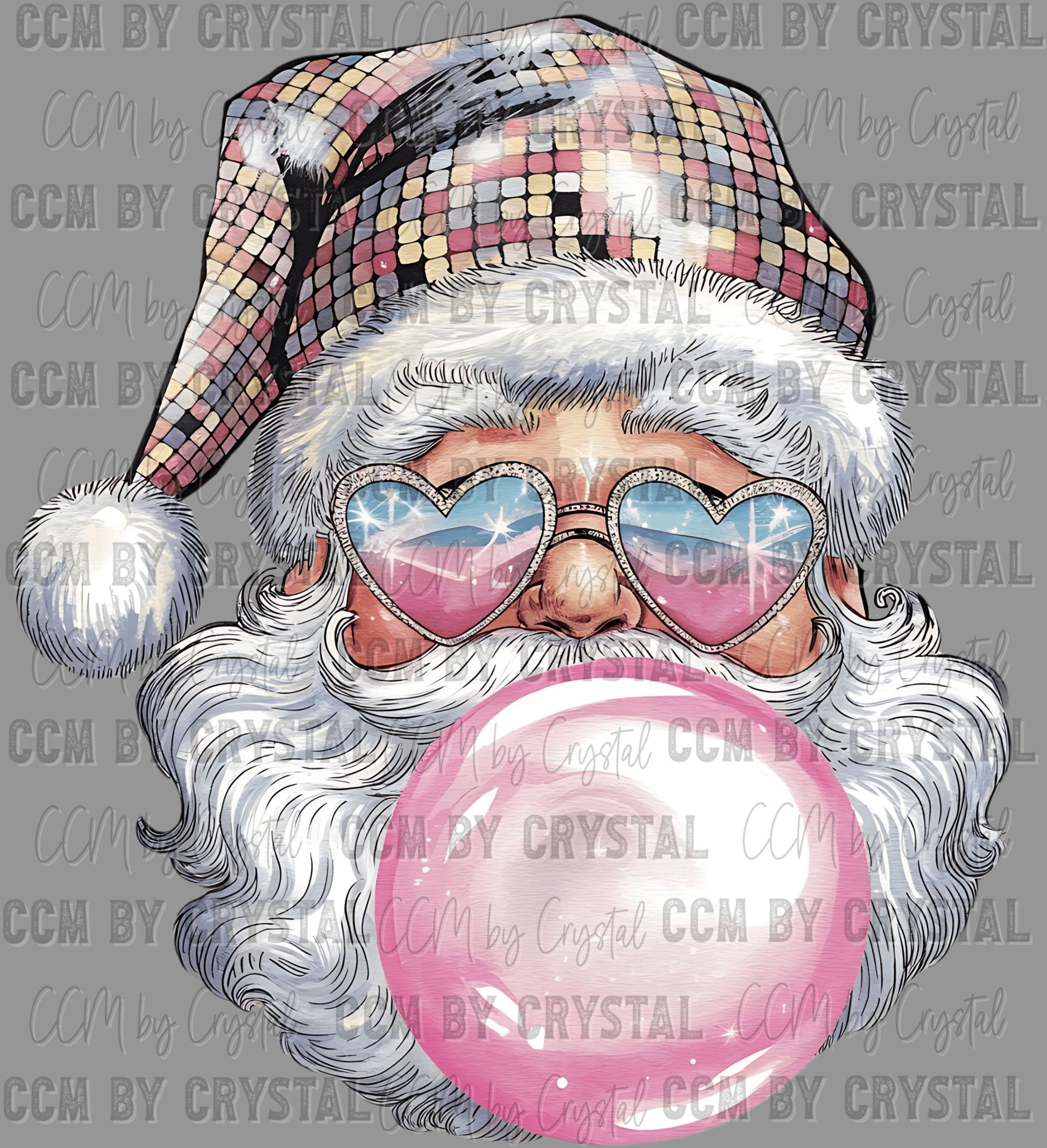 Christmas Disco Bubblegum Santa UV DTF Transfer Sticker Ready to Apply