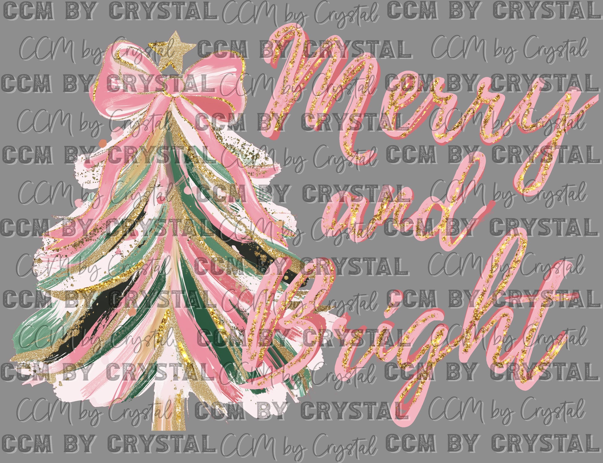 Christmas Merry and Bright Faux Fake Glitter Ready to Press Transfer Instant Peel DTF Transfer Sublimation Transfer