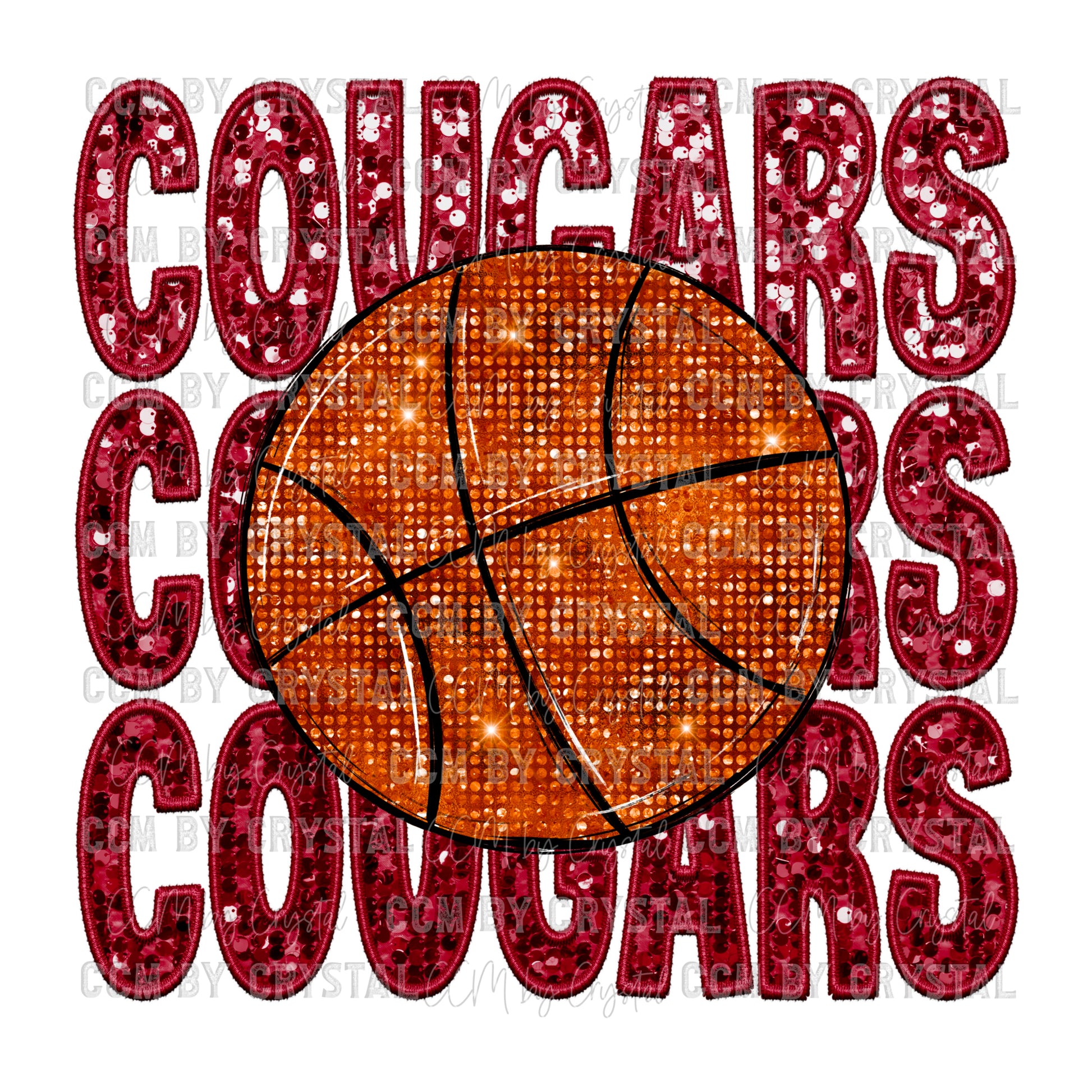 Cougars Basketball Faux Embroidery Faux Sequins Ready To Press Transfer