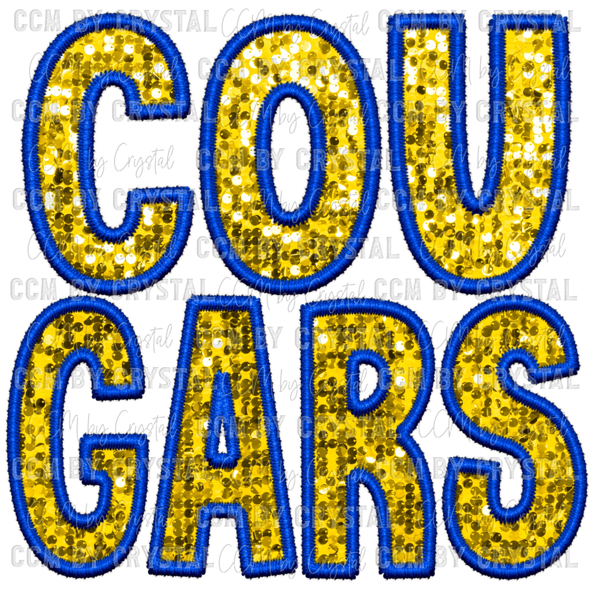 Cougars Mascot Faux Embroidery Faux Sequins PNG Digital File ONLY