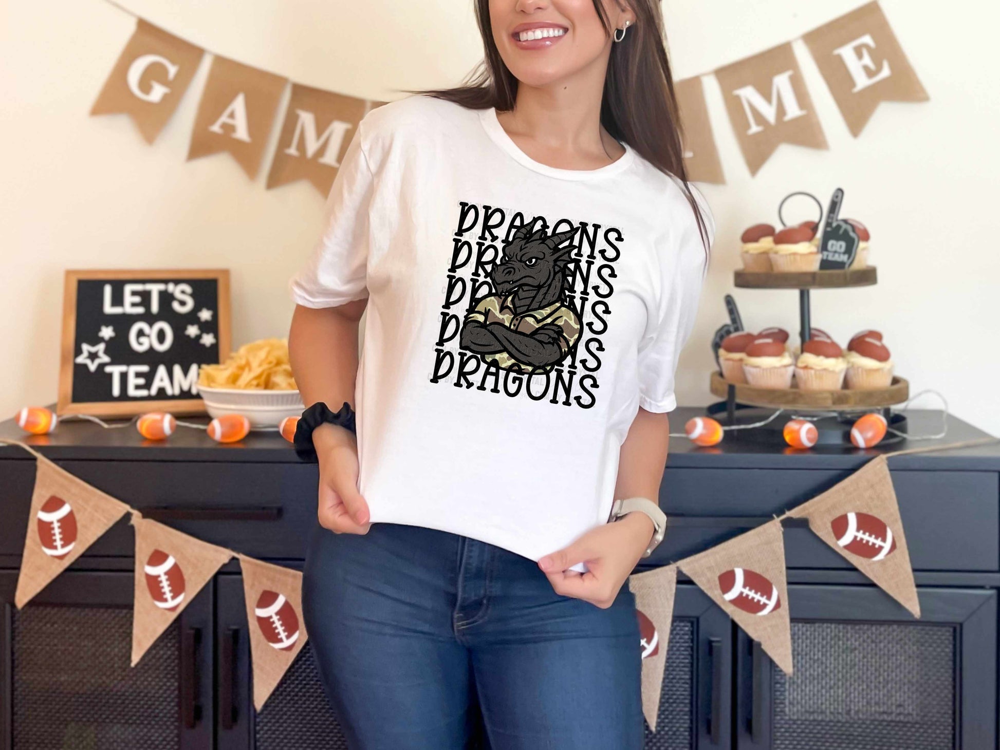 Dragons Camo Stacked Sports Mascot Ready to Press Transfer DTF Transfer Sublimation Transfer