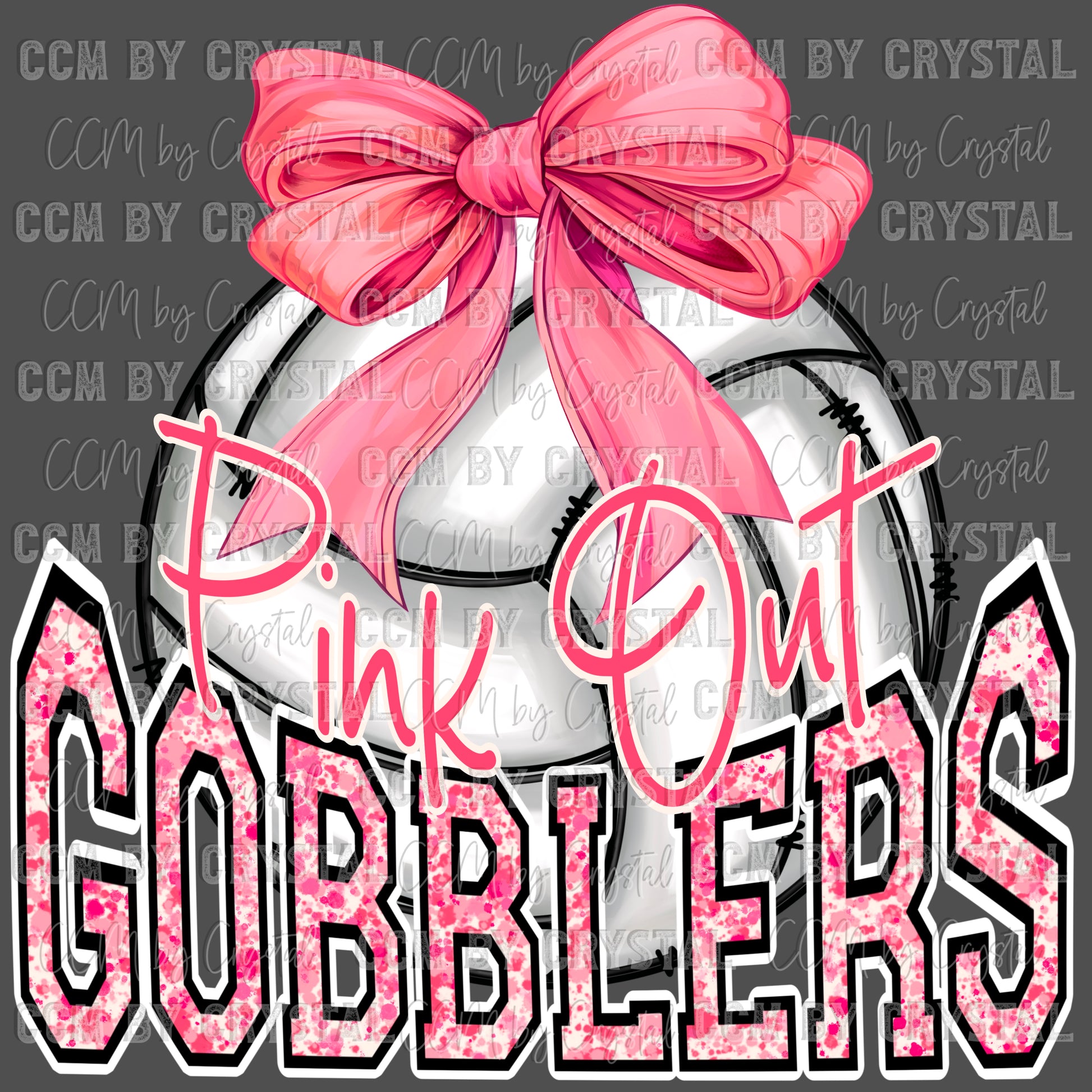 Cuero Gobblers Volleyball Bow Pink Out Mascot Ready to Press Transfer DTF Transfer Sublimation Transfer