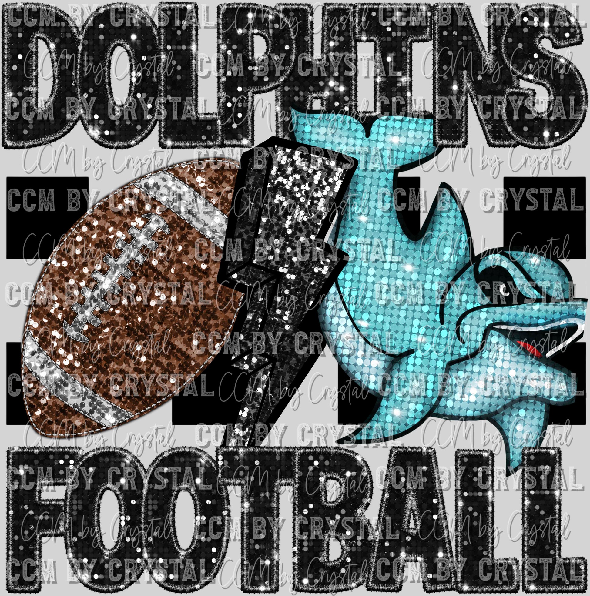 Dolphins Football Faux Sequins Faux Embroidery Ready to Press Transfer