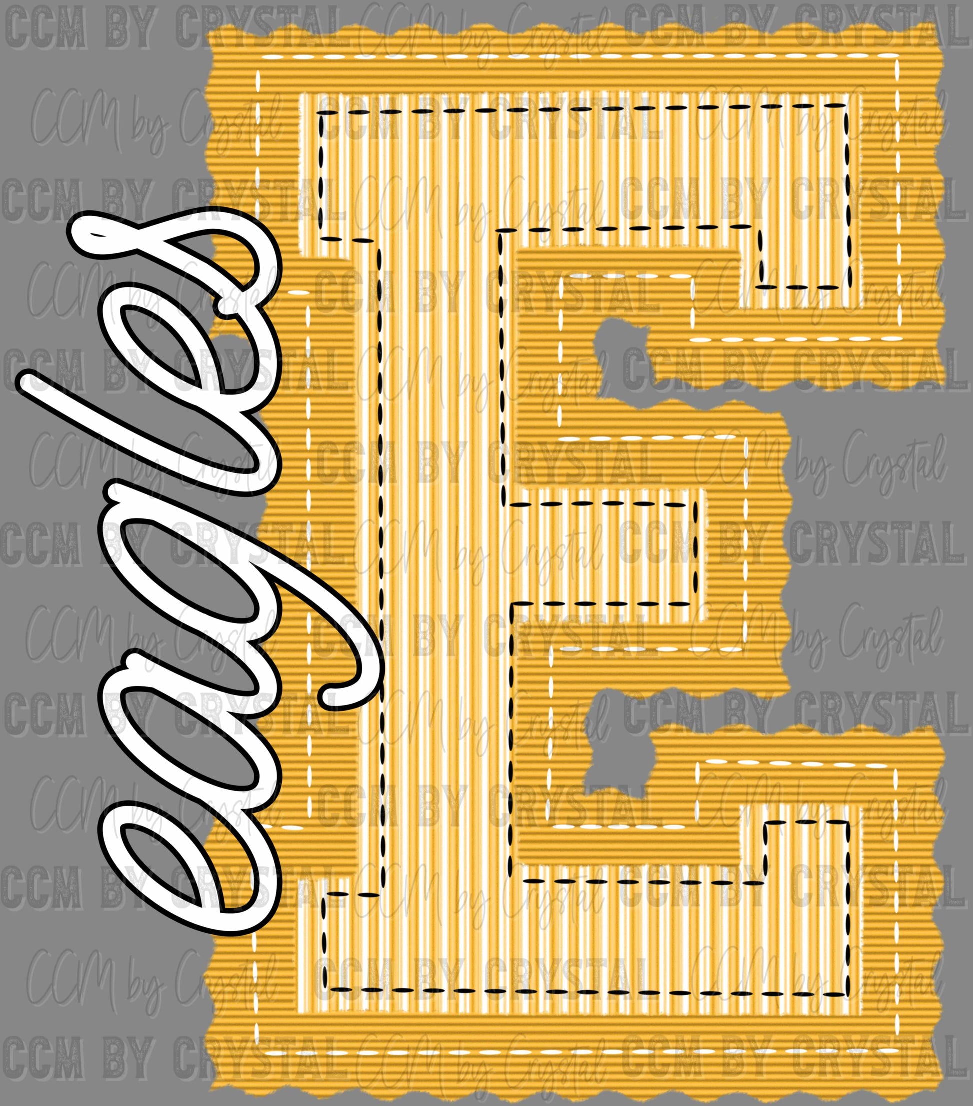 Eagles Faux Embroidery Yellow Sports Mascot Ready to Press Transfer DTF Transfer Sublimation Transfer