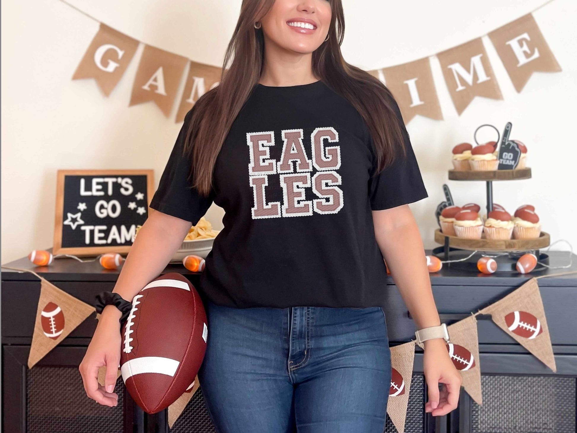 Eagles Faux Embroidery Maroon White Sports Mascot Ready to Press Transfer DTF Transfer Sublimation Transfer