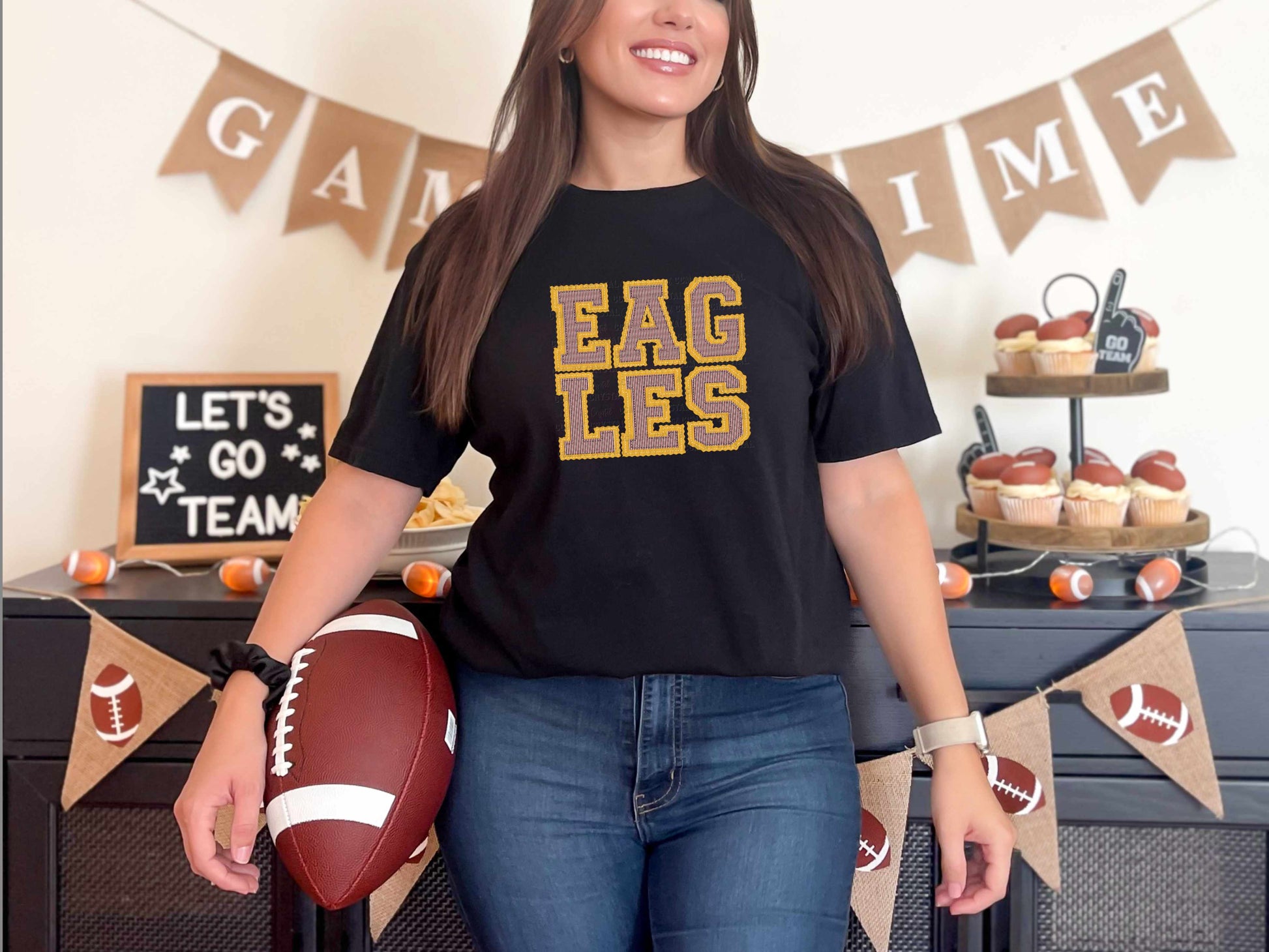 Eagles Faux Embroidery Maroon Yellow Sports Mascot Ready to Press Transfer DTF Transfer Sublimation Transfer