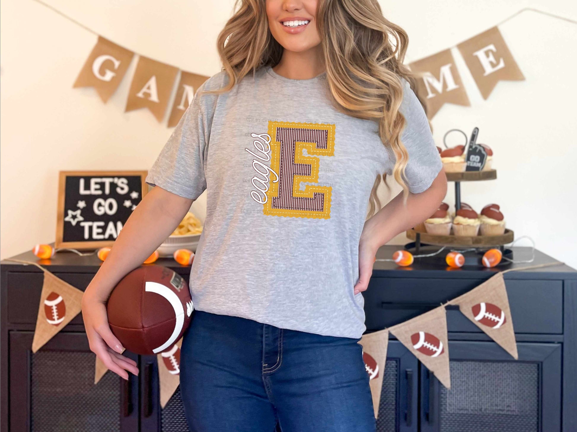 Eagles Faux Embroidery Maroon Yellow Sports Mascot Ready to Press Transfer DTF Transfer Sublimation Transfer