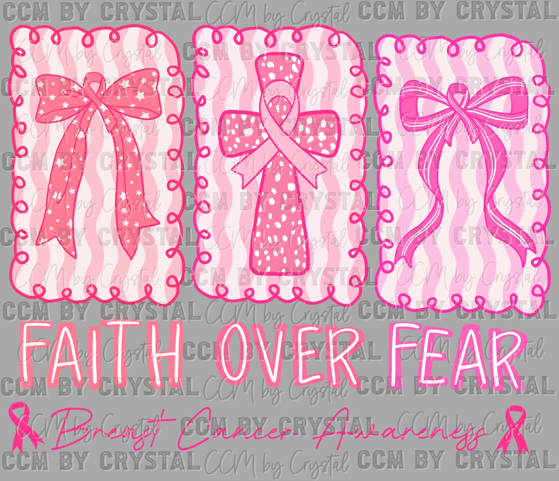 Faith Over Fear Breast Cancer Awareness Ribbons Pink Crosses Christianity Stars Ready to Press Transfer DTF Transfer Sublimation Transfer
