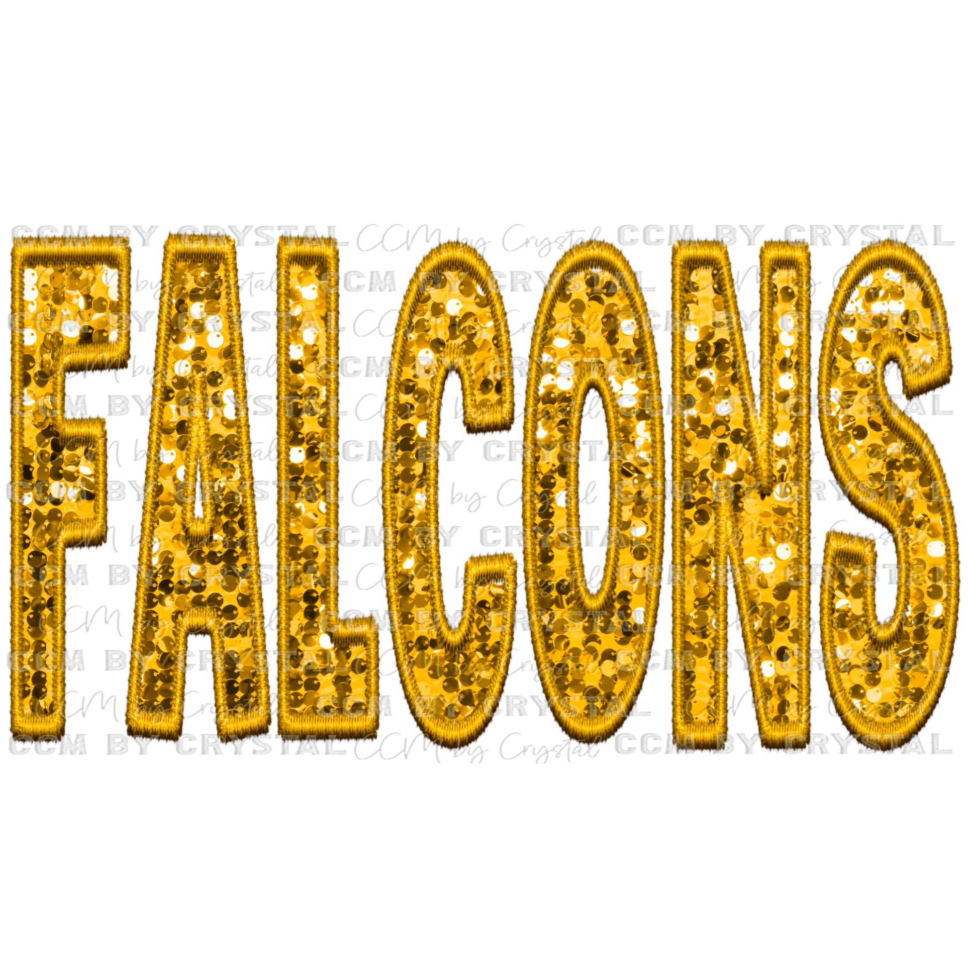 Falcons Mascot Faux Embroidery Faux Sequins Ready To Press Transfer