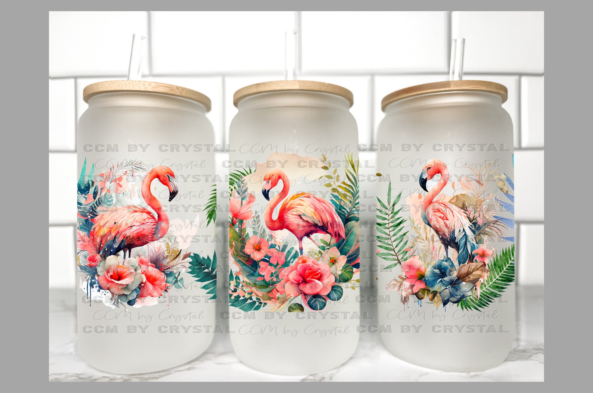 Flamingos Summertime UV Transfer 16oz Libby Glass Can Wrap Ready to Apply