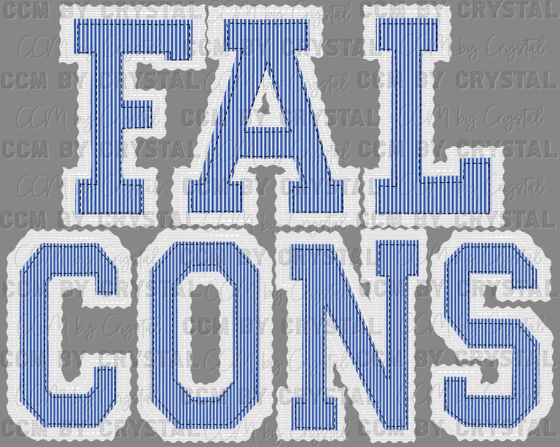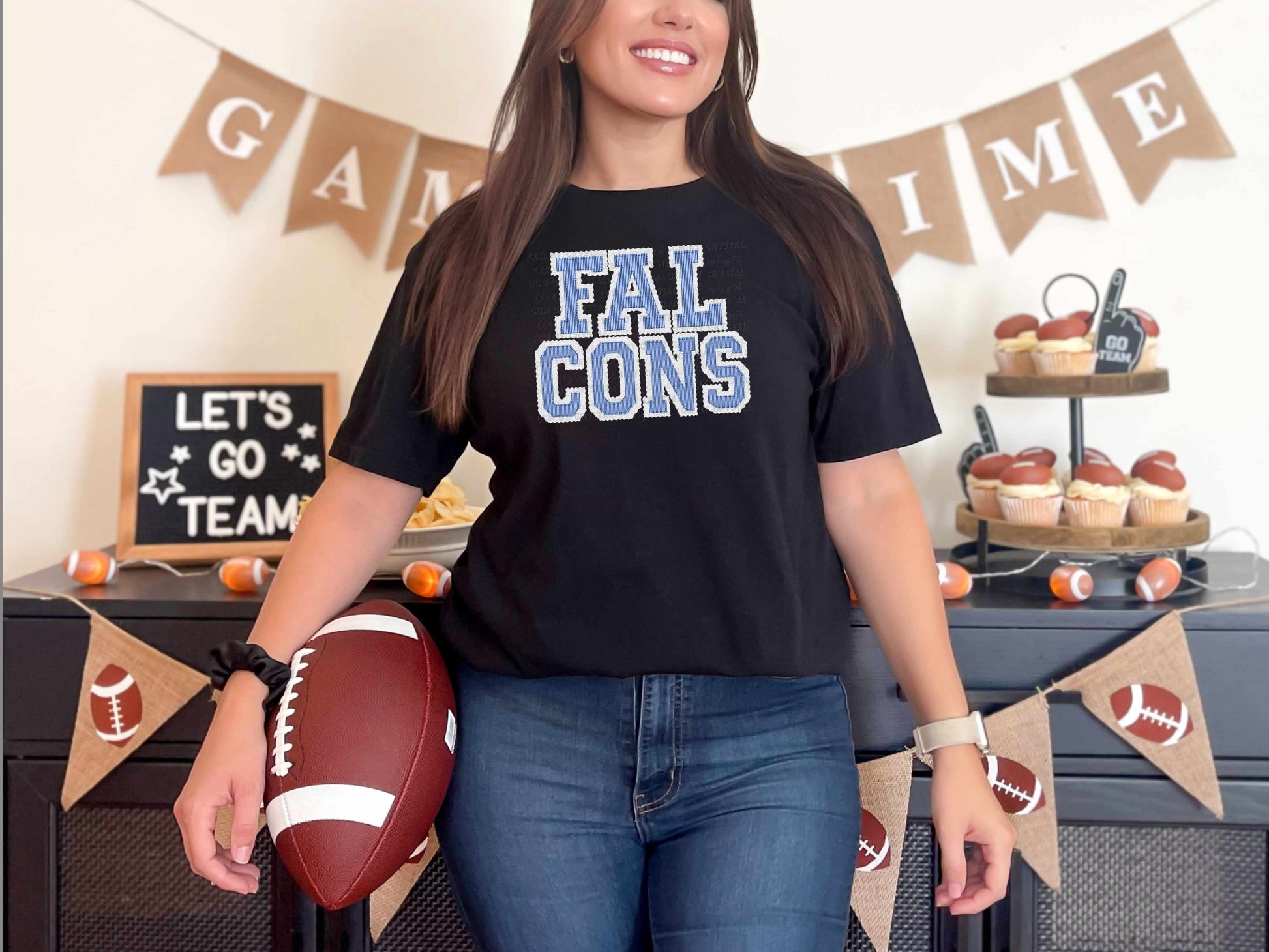 Falcons Faux Embroidery Blue White Sports Mascot Ready to Press Transfer DTF Transfer Sublimation Transfer