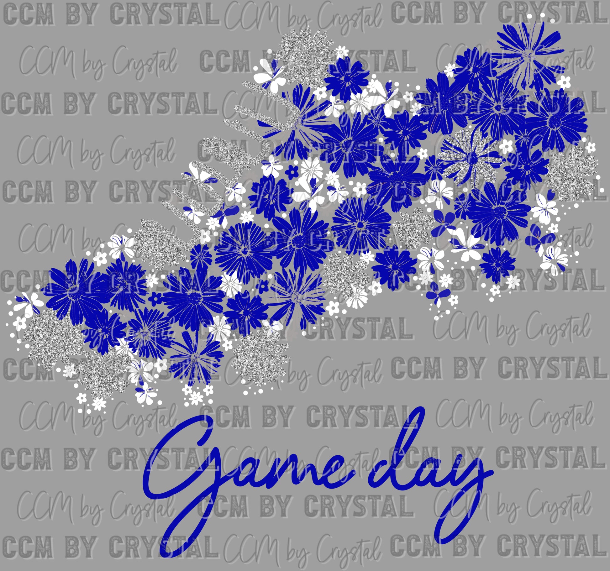 Game Day Cleat Floral Navy White Silver Flowers Football Sports Ready to Press Transfer DTF Transfer Sublimation Transfer