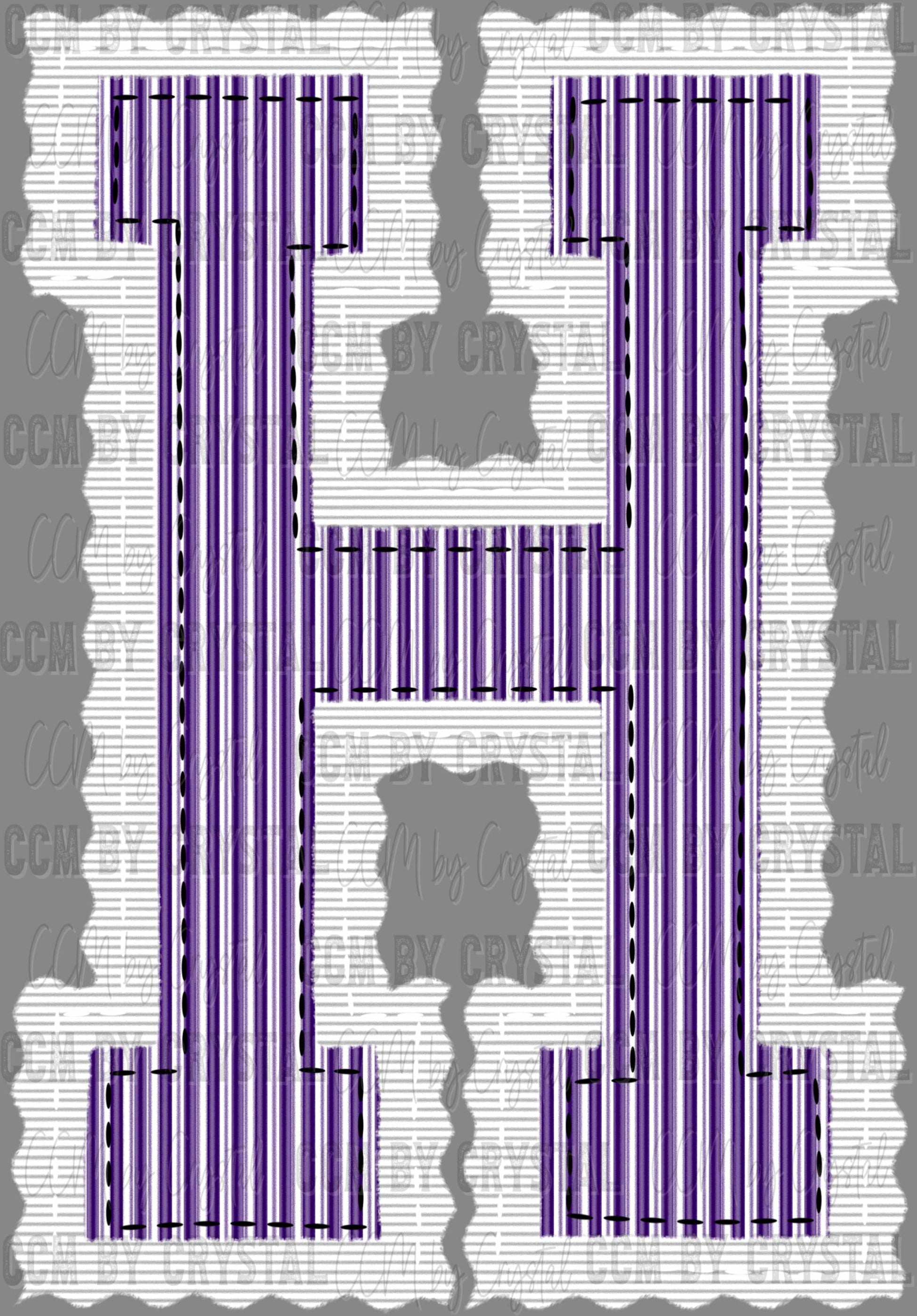 H Faux Embroidery Purple White Sports Mascot Ready to Press Transfer DTF Transfer Sublimation Transfer