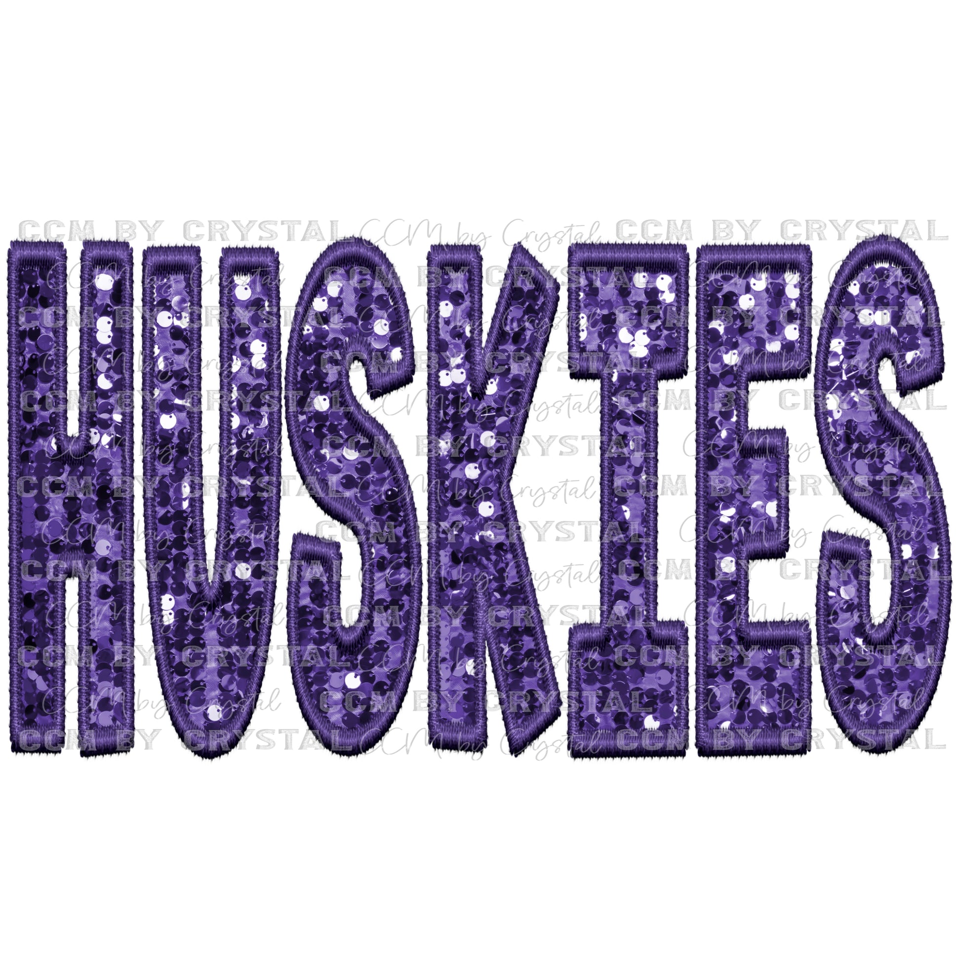 Huskies Mascot Purple Faux Embroidery Faux Sequins PNG Digital File ONLY