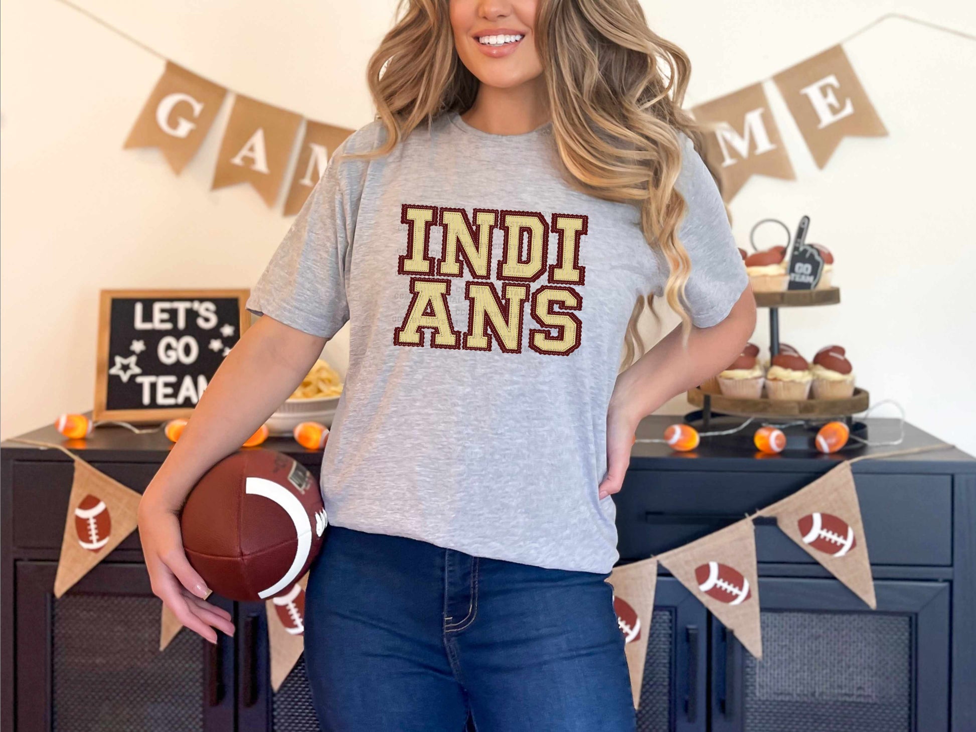 Indians Faux Embroidery Yellow Maroon Sports Mascot Ready to Press Transfer DTF Transfer Sublimation Transfer