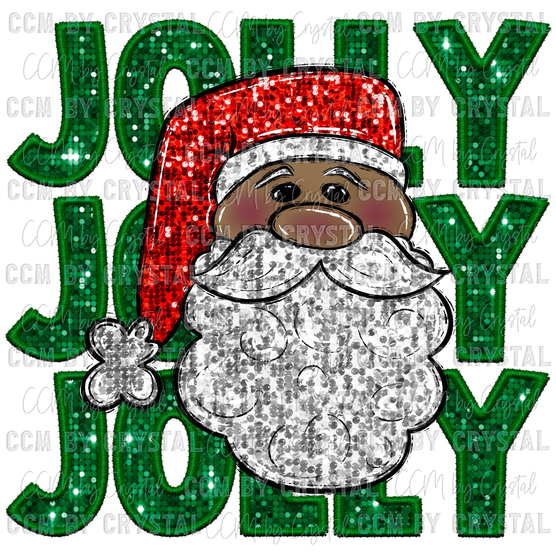 Jolly Santa Christmas Faux Embroidery Faux Sequins Ready To Press Transfer DTF Sublimation