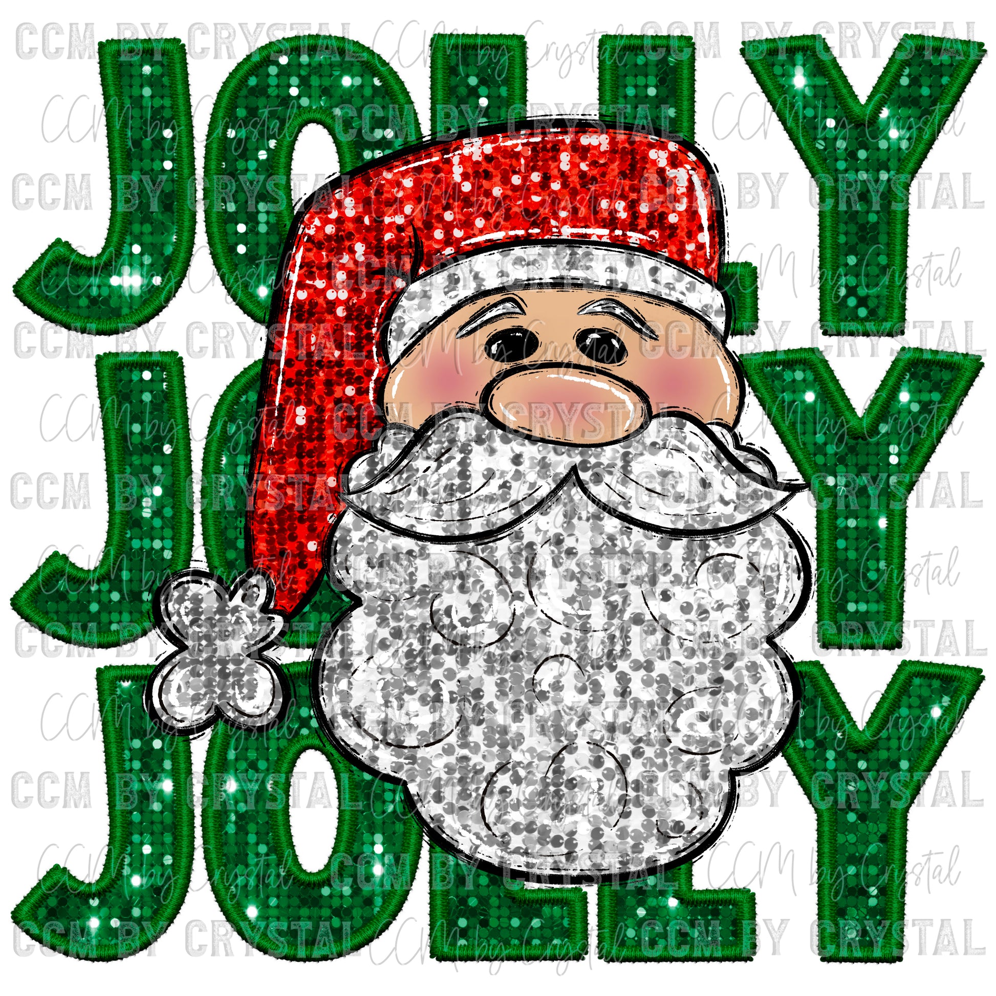 Jolly Santa Faux Embroidery Faux Sequins PNG Digital File ONLY