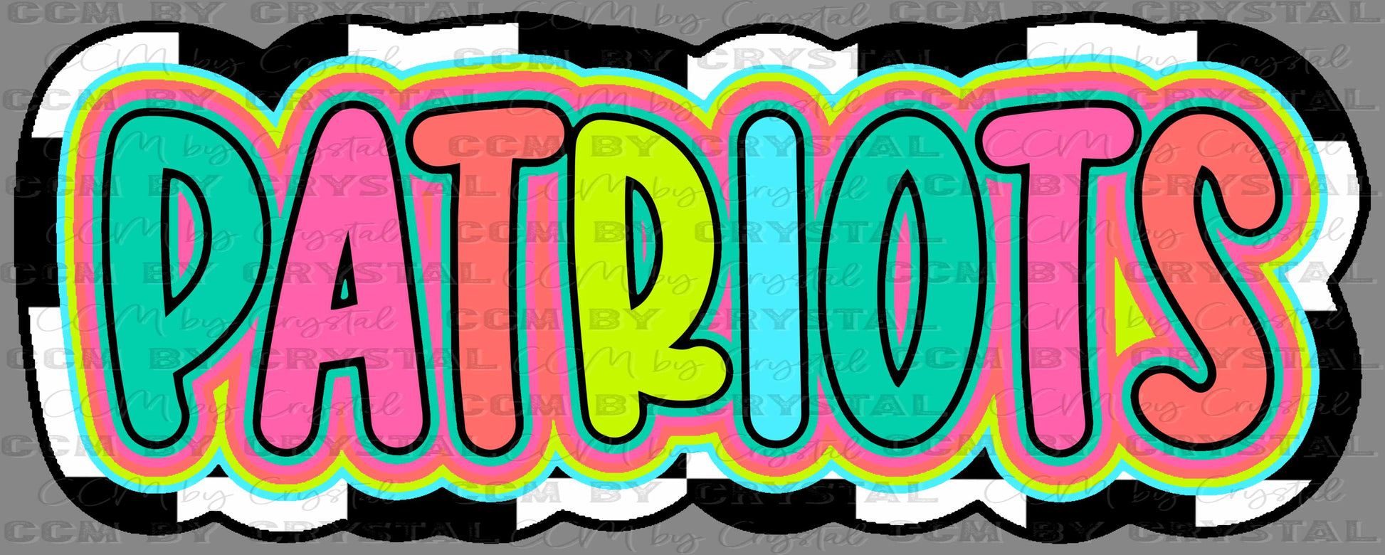 Patriots Colorful Checkered Sports Mascot Ready to Press Transfer DTF Transfer Sublimation Transfer