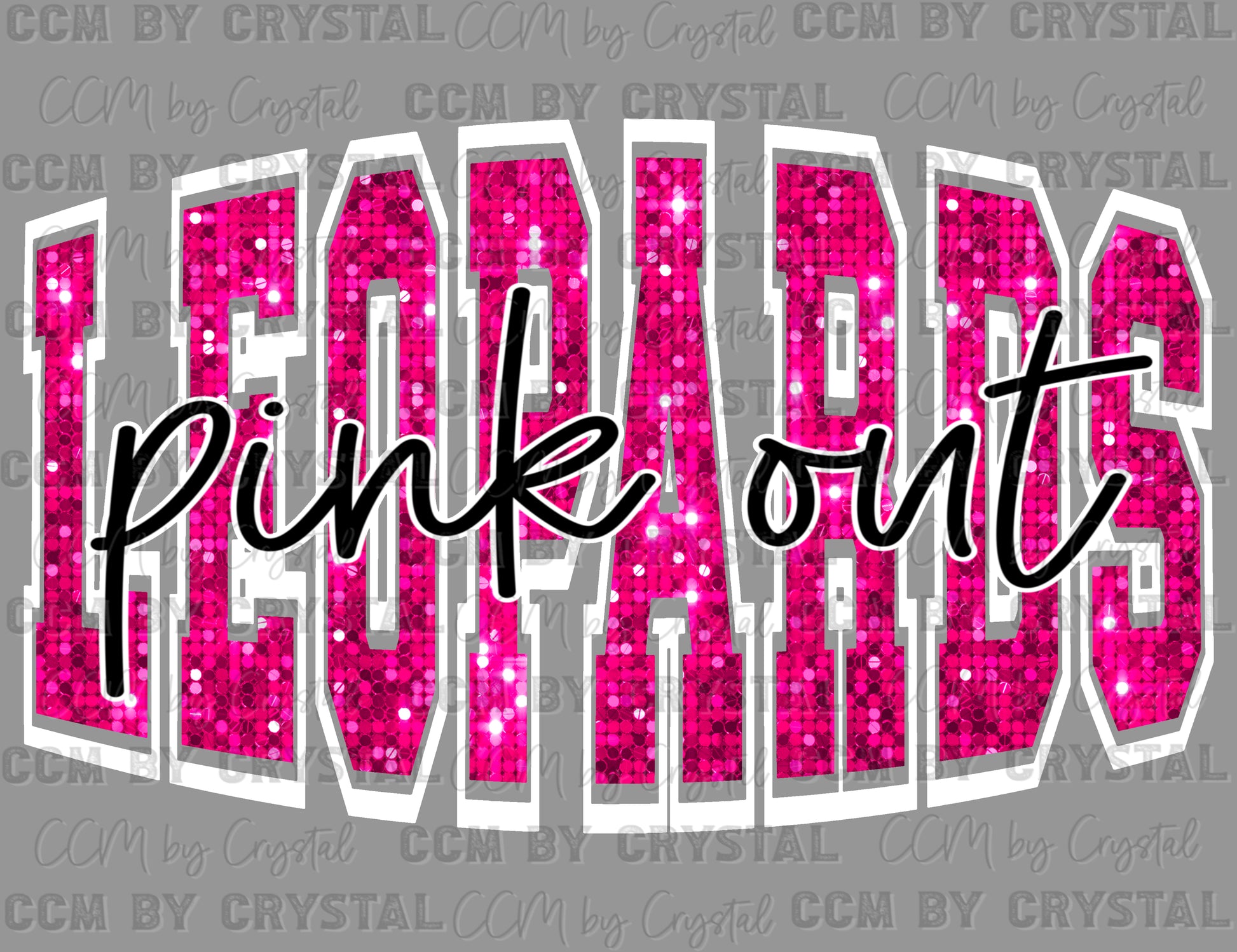 Leopards Pink Out Faux Sequins Mascot Ready to Press Transfer DTF Transfer