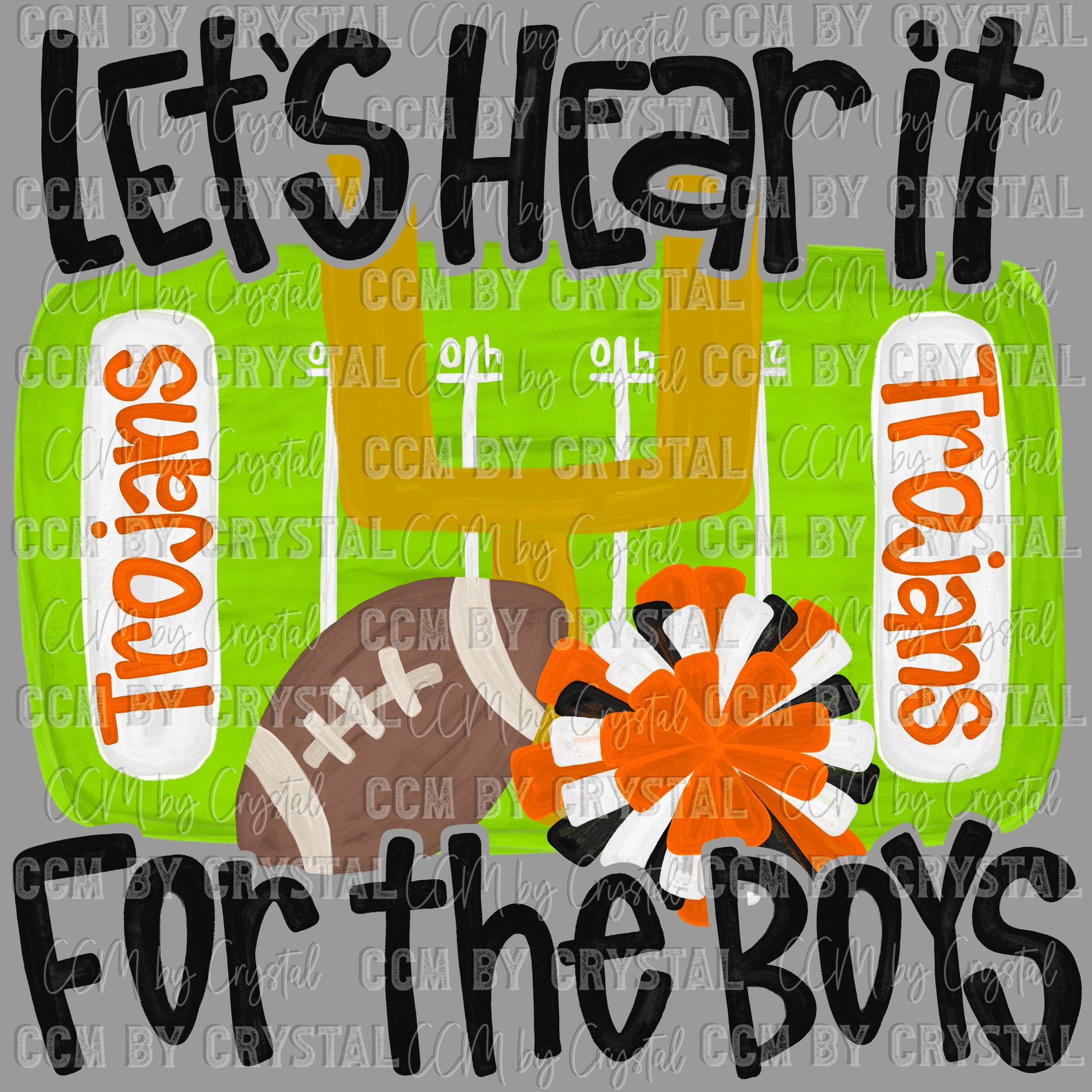 Trojans Let’s Hear It for the Boys Mascot Ready to Press Transfer DTF Transfer Sublimation Transfer