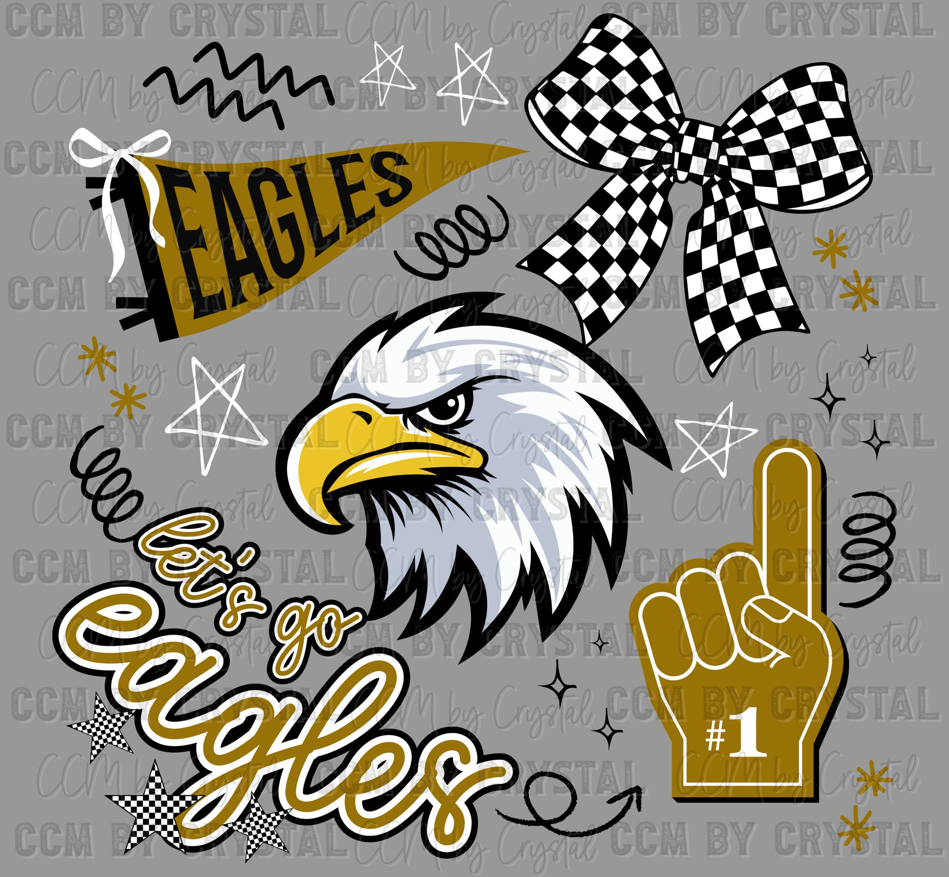 Let's Go Eagles Gold Mascot Ready to Press Transfer DTF Transfer Sublimation Transfer