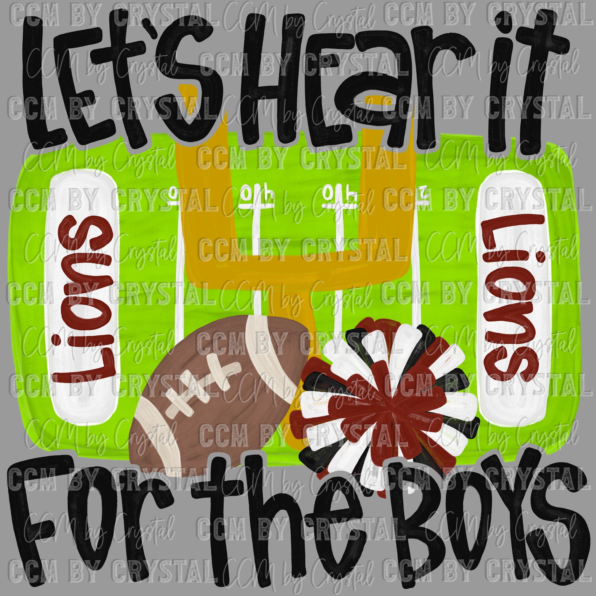 Lions Let’s Hear It for the Boys Mascot Ready to Press Transfer DTF Transfer Sublimation Transfer