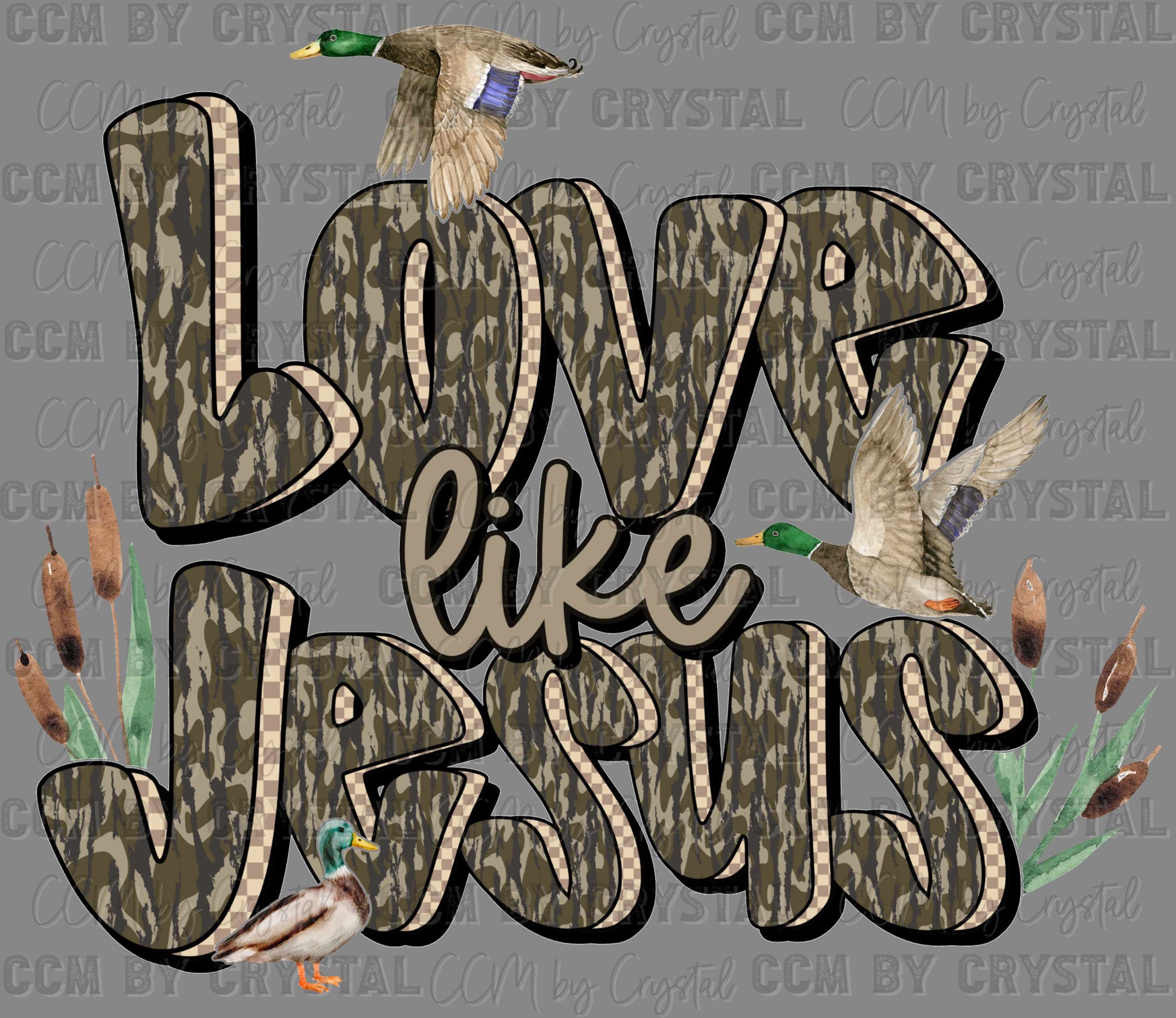Love like Jesus Camo Ducks Christianity Ready to Press Transfer DTF Transfer Sublimation Transfer