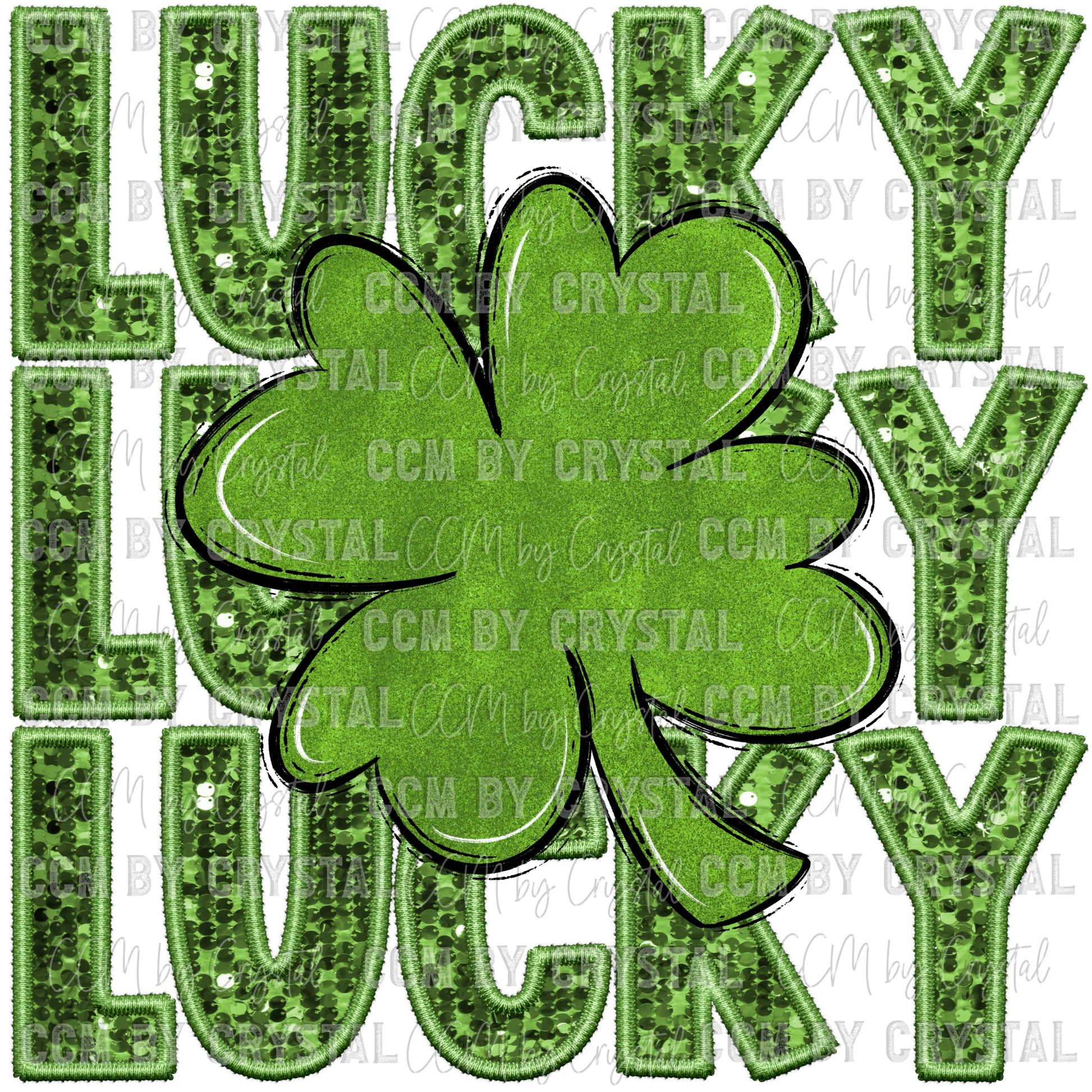 Lucky St Patrick’s Day Faux Embroidery Faux Sequins PNG Digital File ONLY