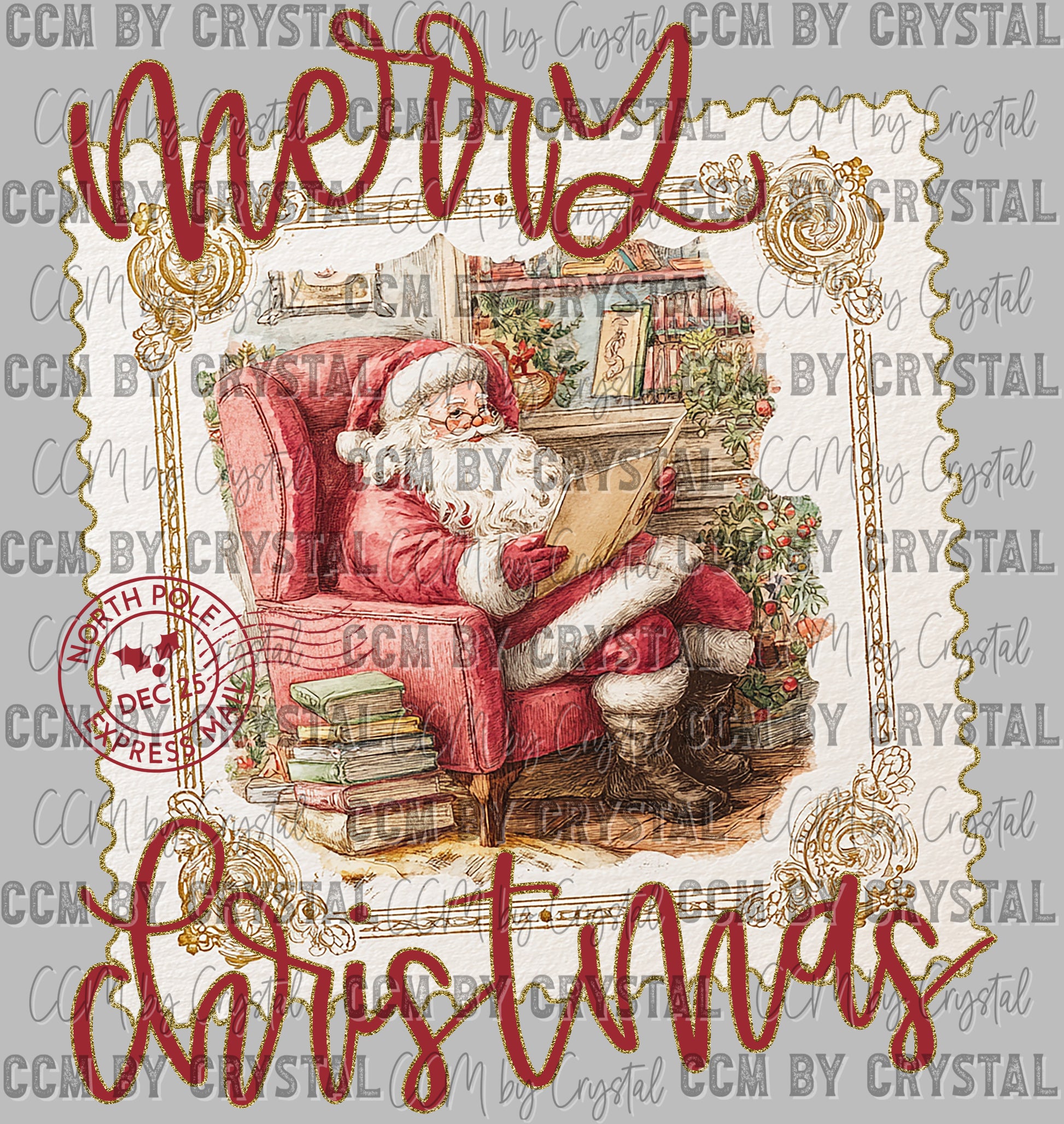 Merry Christmas Santa Vintage Stamp Ready to Press Transfer DTF Transfer Sublimation Transfer
