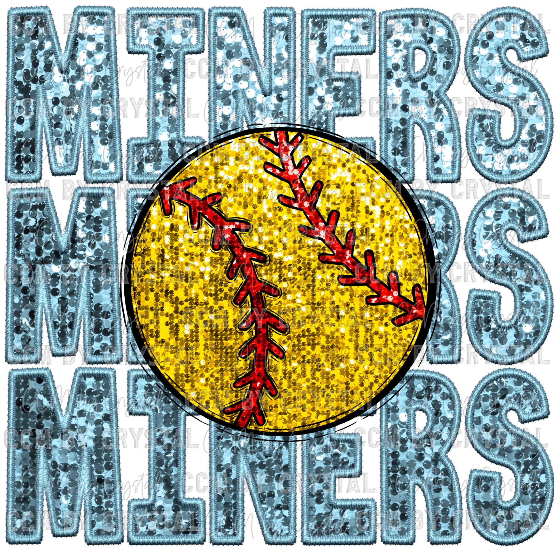 Miners Softball Faux Embroidery Faux Sequins PNG Digital File ONLY