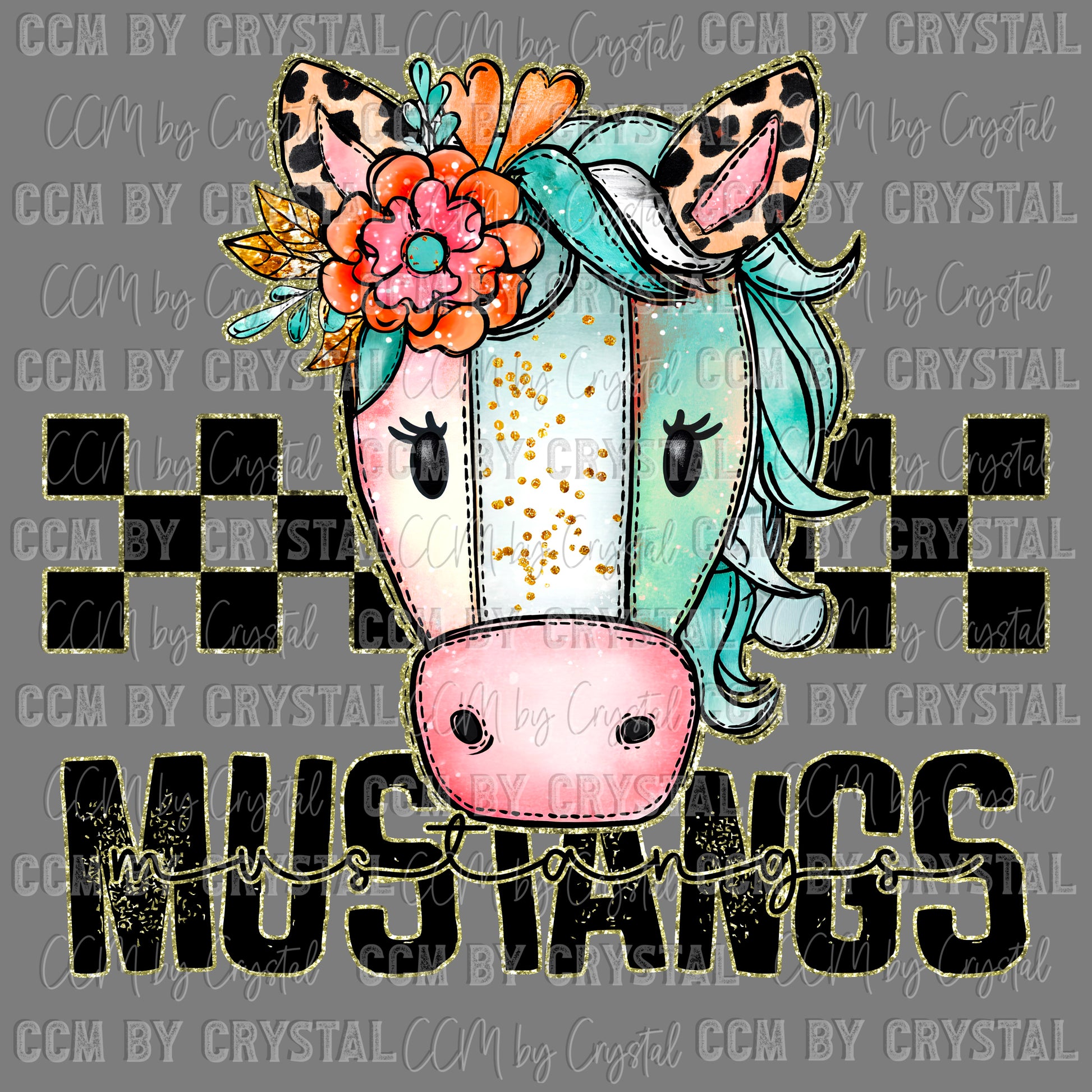 Mustangs ColorfulMascot Ready to Press Transfer DTF Transfer Sublimation Transfer