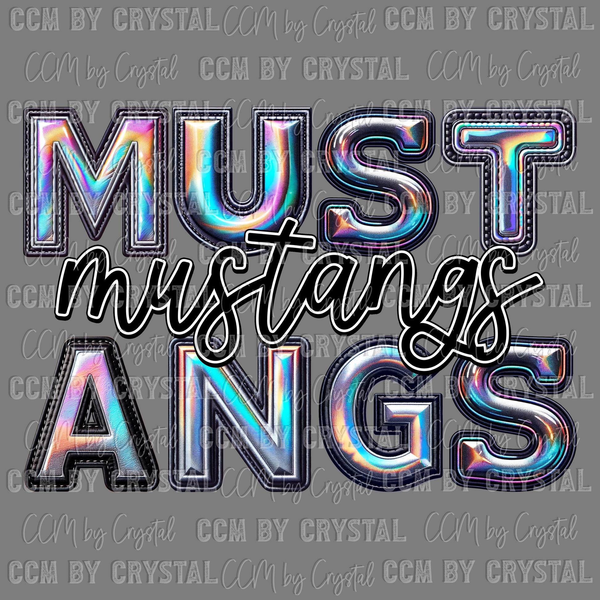Mustangs Iridescent Pennant Mascot Ready to Press Transfer DTF Transfer Sublimation Transfer