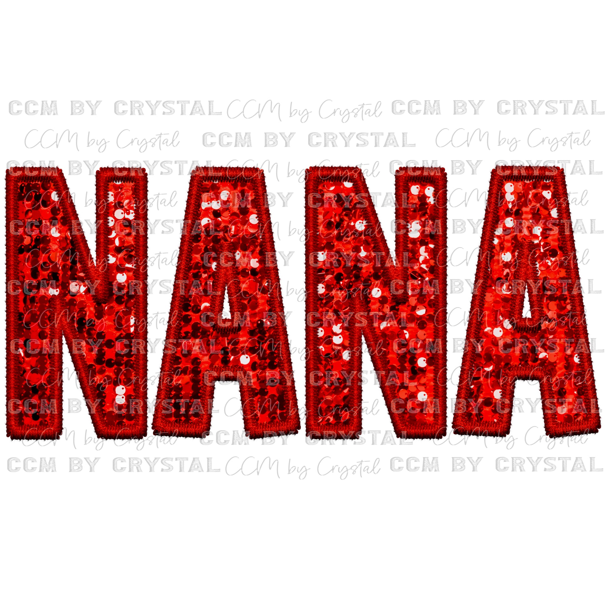 Nana Faux Embroidery Faux Sequins PNG Digital File ONLY
