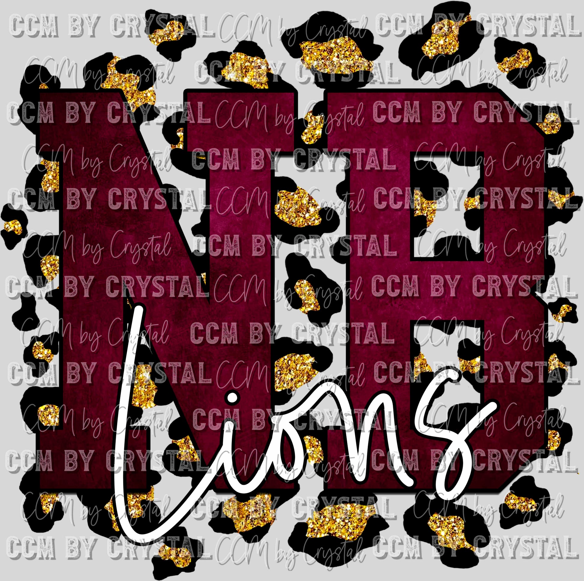 NB Lions Maroon with Gold Leopard background PNG Digital File ONLY