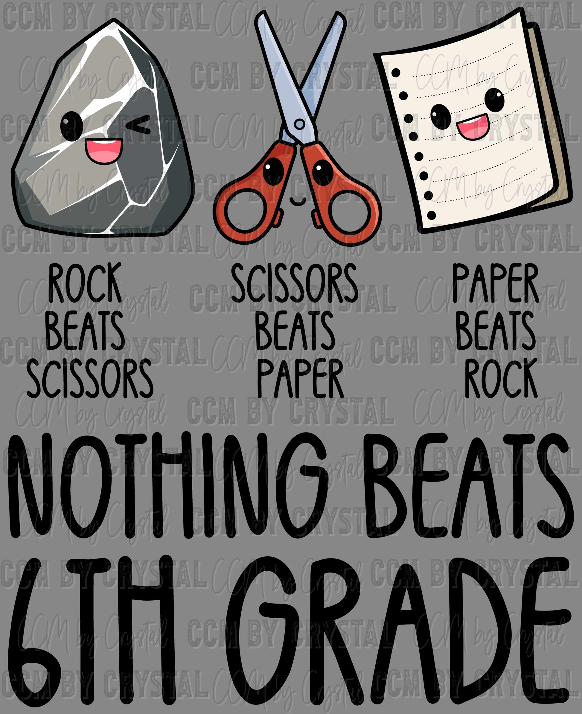 Nothing Beats 6th Grade Rock Paper Scissors Ready to Press Transfer DTF Transfer Sublimation Transfer