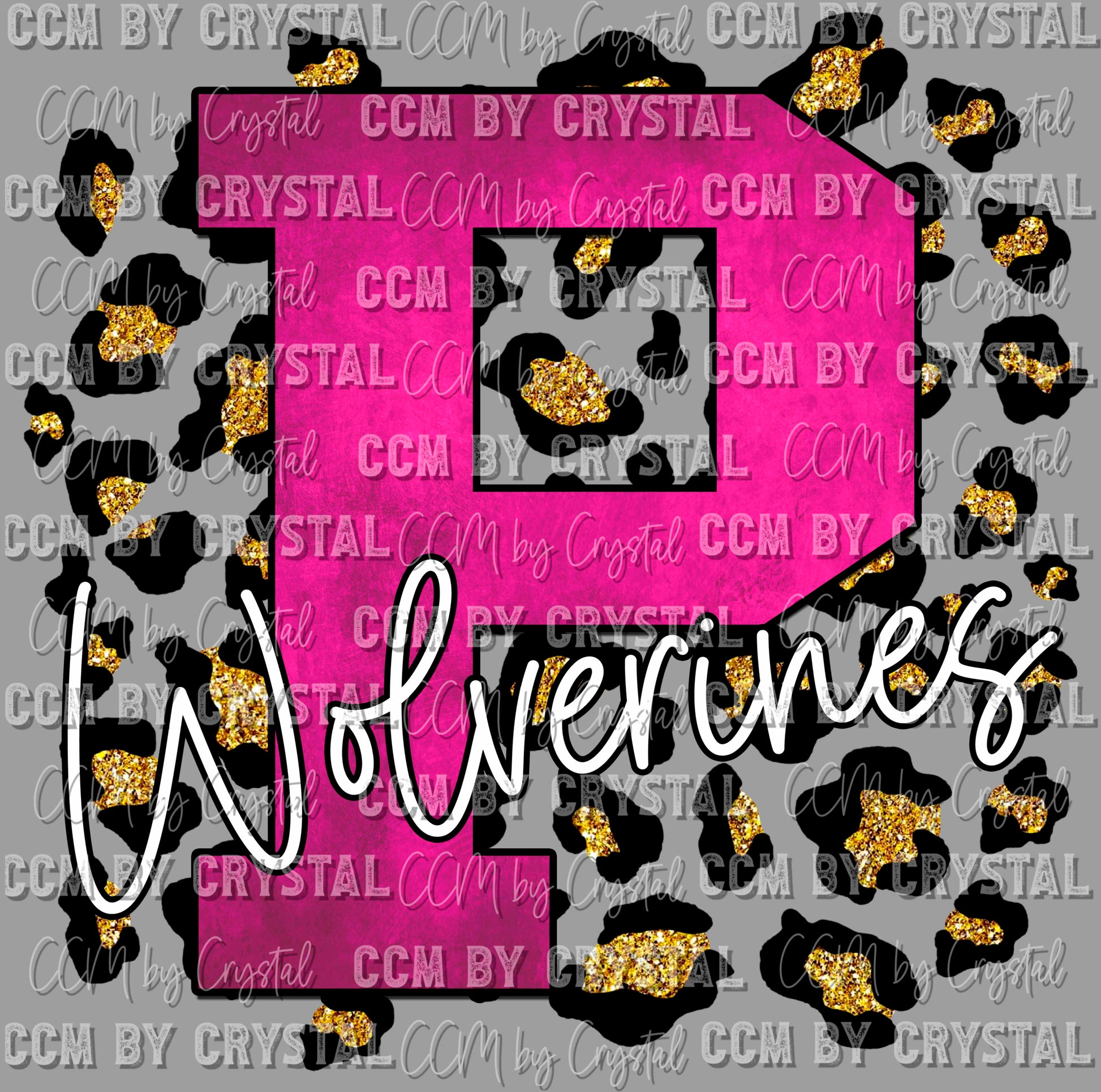 P Wolverines Pink with Gold leopard Background PNG Digital File ONLY