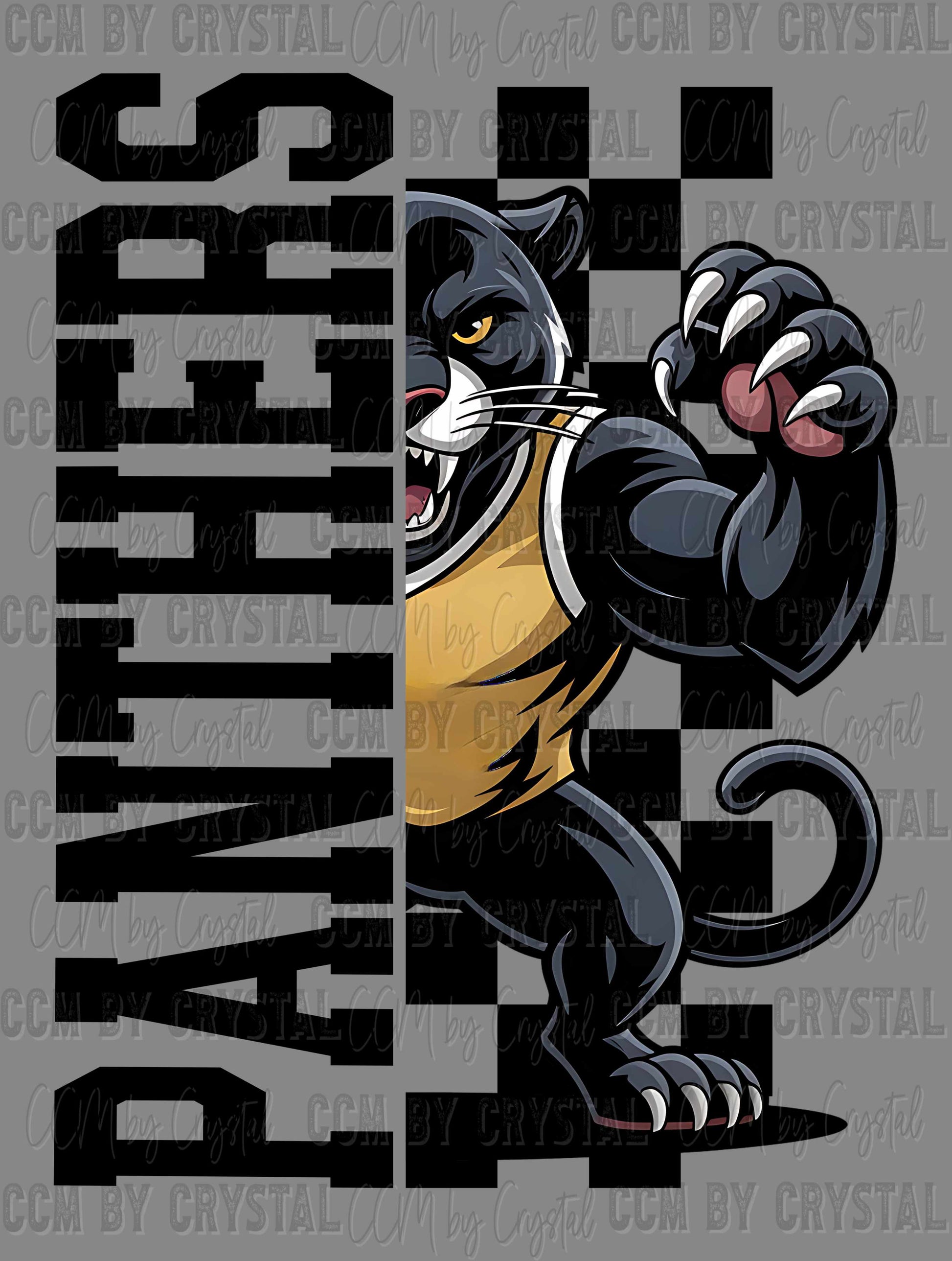 Panthers Yellow Checkered Sports Mascot Ready to Press Transfer DTF Transfer Sublimation Transfer