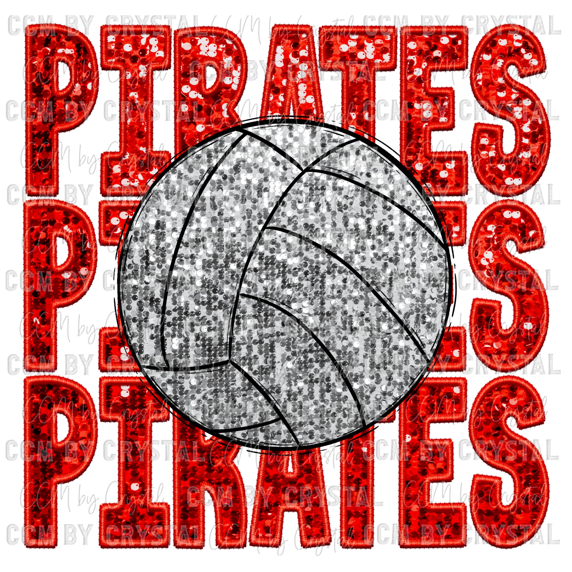Pirates Volleyball Faux Embroidery Faux Sequins PNG Digital File ONLY